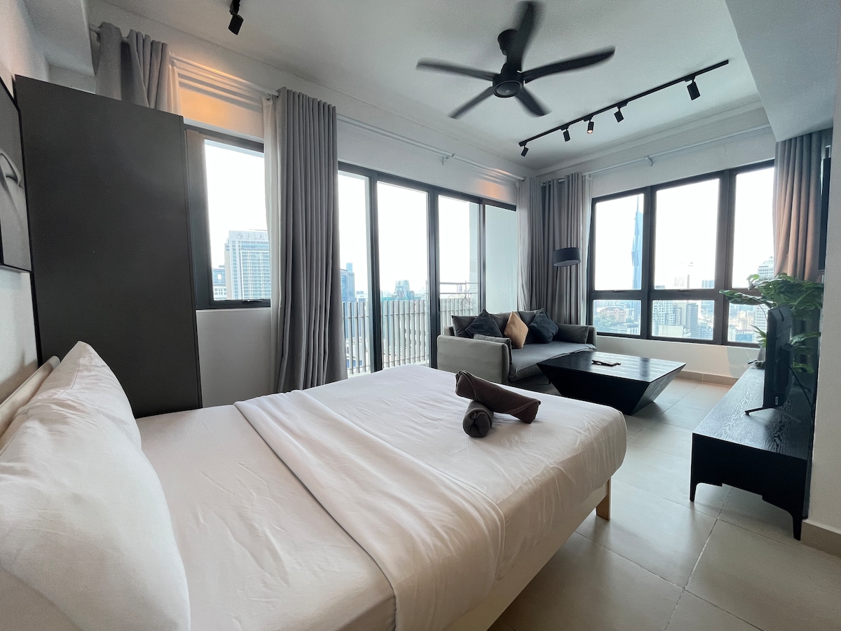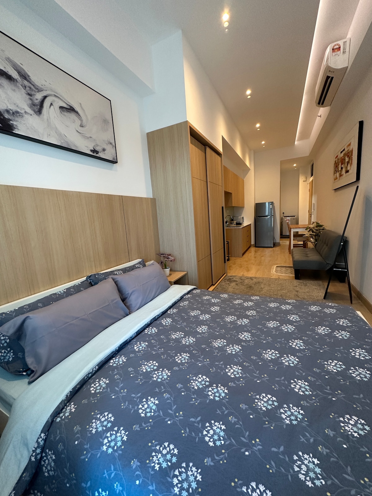 Welcome to your luxury urban retreat in the heart of Kuala Lumpur! Enjoy a hybrid studio apartment✨ Features include: • A plush queen-size bed with hotel-grade linens • Fully equipped kitchen • Air-conditioning & ceiling fan • Smart TV with Netflix access • Fast Wi-Fi • Washing machine Whether you’re here for work or leisure, the space offers the balance of warmth and comfort!