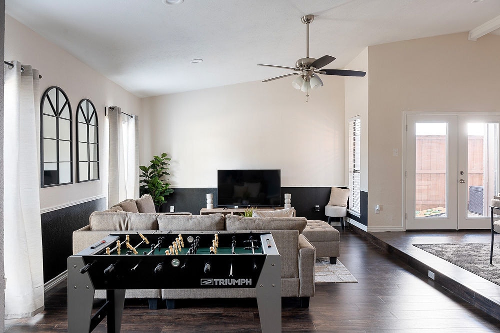 Welcome to our luxurious family-friendly Airbnb! Our home has all the amenities you need for a comfortable and enjoyable getaway with your loved ones. Watch movies and TV shows on the huge 85-inch screen, relax in the hot tub, or play in the grassy backyard. We even have a cozy reading nook for quiet moments. Located near Legacy West, The Star, RoughRiders Baseball, and many shopping malls, you'll never run out of things to do. Book your stay today and start planning the ultimate vacation!