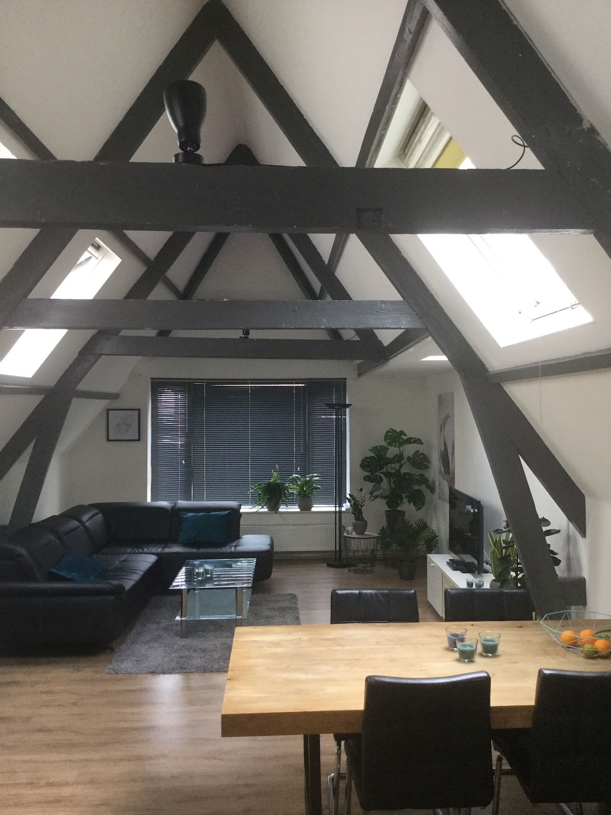 This cosy Penthouse on the top floor of a Canalhouse has all the Luxery you can wish for. Located in the old town, just a 1-minute walk from the park and center ring. Small coffee shops, vegan, healthy food and many cozy, affordable restaurants are within walking distance in arguably the most beautiful city in the Netherlands. With the train station around the corner, it is the perfect place (in the middle of the country) to make your city trips to Amsterdam, Rotterdam or the beach.