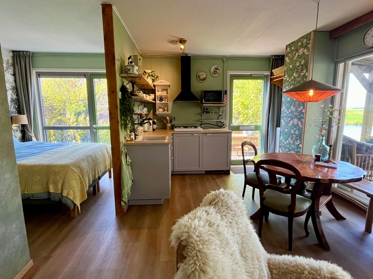 The houseboat is a spacious and comfortable place on a quiet canal. It is a romantic experience, even ducks will come to say hi. Two bedrooms, one bathroom and a nice open living room to enjoy. It is decorated in a modern style and peaceful colors. The kitchen has all the appliances and a dishwasher. In the living room there is a comfortable sofa and TV with cable.