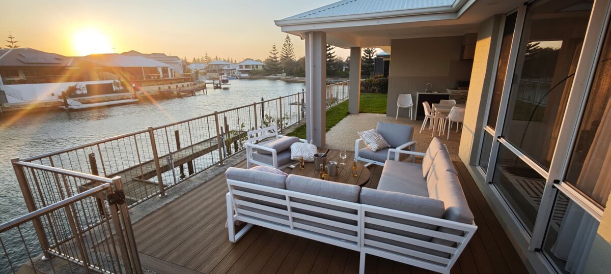 This property is located in Wannanup and is part of Port Bouvard development known for it peaceful surrounds and comprises of a 4 bedroom, 2 bathroom with its own grand cinema and private jetty. The space The house is newly constructed with a feature brick and tile. Tastefully decorated with quality furnishing and segmented with glass panels that take advantage of the panoramic views of the canal. Bedding configuration consists of 1 King bed, 2 Queen beds and 2 Bunk beds makes it comfortable sleeping for 10 people. Cook in a Master Chef's kitchen or use the large outdoor BBQ to entertain family and friends with dinning indoors/outdoors. Sit back, relax and enjoy the views or soak in the sun or get a cinematic feel or play some pool or catch crabs off the jetty or adventure through the canals with the kayaks provided. Please note a damage deposit of $500 is due when booking