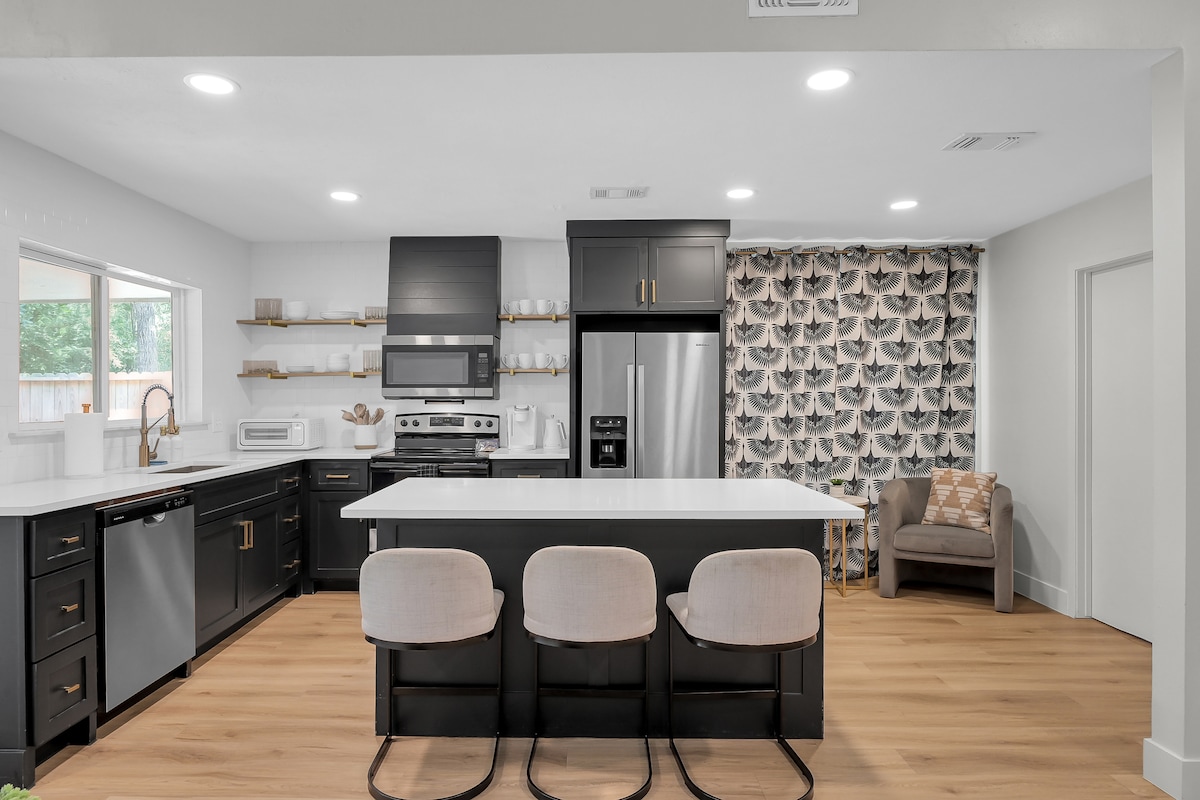 This unique place has a style all its own. Modern, Open-Concept Luxury Estate. Entire Home top to bottom Glass Sliders. Minutes away from all of The Woodlands Texas beautiful attractions. The perfect place to come and enjoy a luxurious stay by yourself or with friends, there is plenty of bedrooms with their own bathroom! Work from home in our dedicated built in workspace with beautiful woodland views. Create your own mood with the entire home being powered by Philips HUE Lights.
