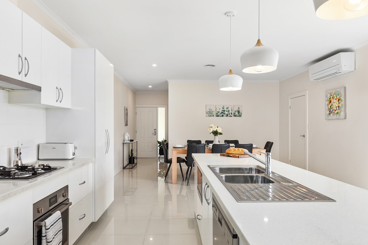 If funky, modern, chic, and retro 70's offering a home away from home are what you are looking for then this property is for you. Located at the top of Mount Gambier the view is priceless overlooking the Eastern township and countryside. A stone's throw (literally) from the iconic Blue Lake. 4 bedroom home is immaculately furnished with simple, modern decor. Fully equipped kitchen. 2 Queen 2 Double beds provide for 8 guests. Washing machine and Dryer