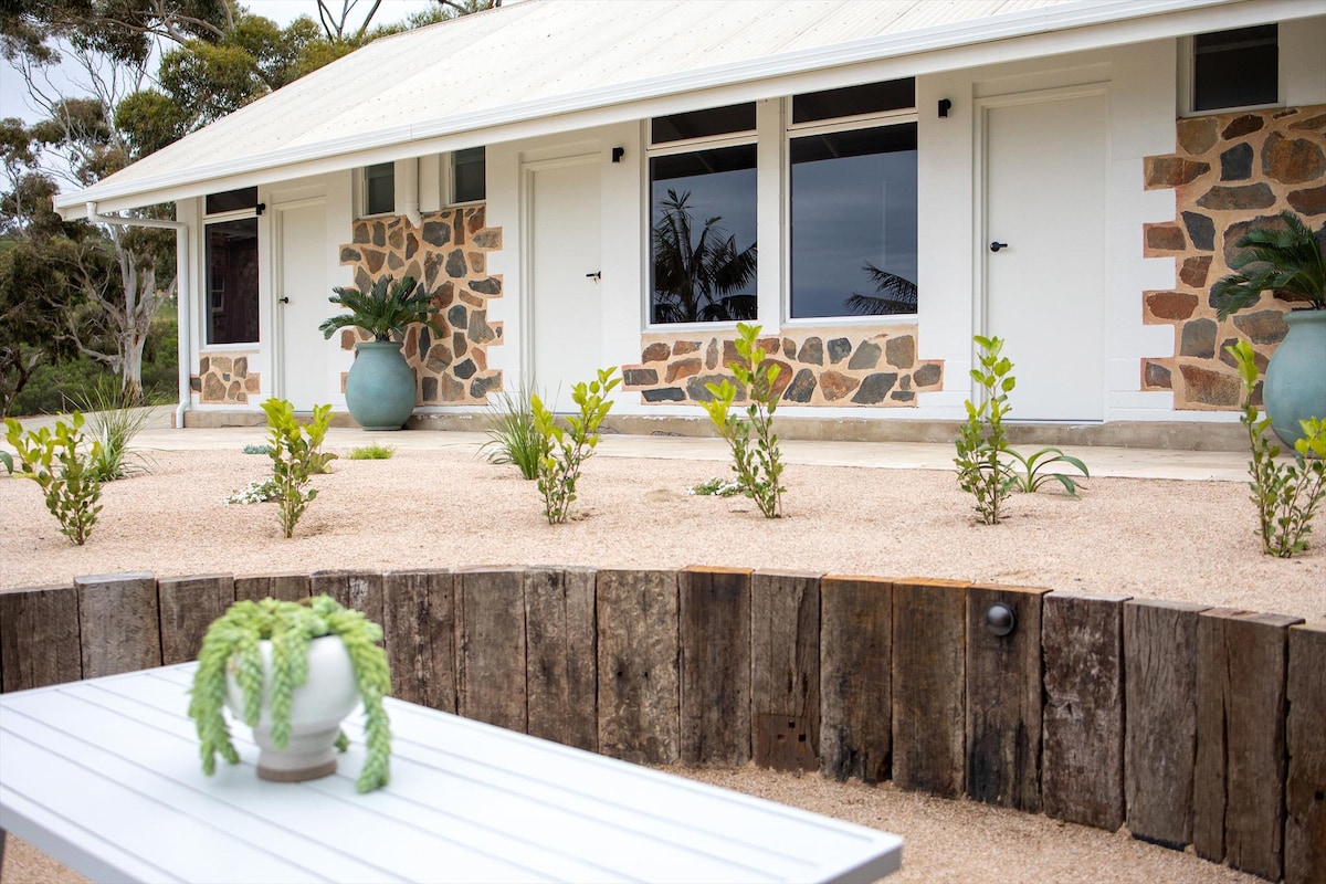 Kick back and relax in this calm, stylish space, located in quiet Boston Bay, 5 minutes from PORT LINCOLN Centre. Cobble + Stone has 4 units set on the 13 acre property of the Grand Victorian residence of Boston House, featuring manicured lawns and gardens with commanding views of Boston Bay. Each unit has one queen bed, a 50 inch flat-screen TV, en-suite, kitchenette including microwave, fridge, freezer, toaster, kettle and tea and coffee and split system reverse cycle air conditioning.