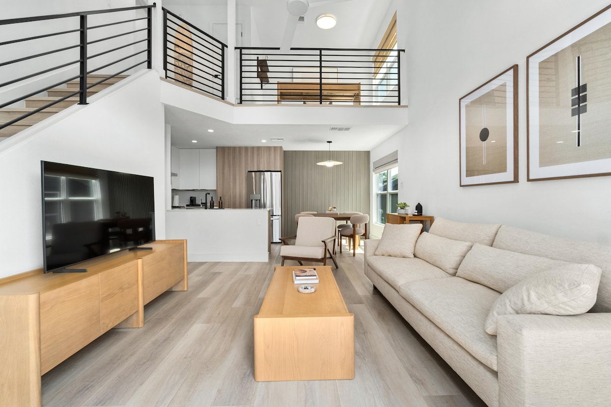The Luxe Retreat: Live Among The Labels, Gucci, Luis Vuitton, & Dior (2BR/2BA). The Luxe Retreat offers the rare chance to Live Luxury in the heart of Austin’s most exclusive retail district.This prime location puts you steps from premier shopping and dining, and minutes from Q2 Stadium! The chic space sleeps four and features a cozy living room with an electric fireplace, a full kitchen, and a dedicated workspace. This cozy rental is the perfect retreat for unwinding after your adventures.