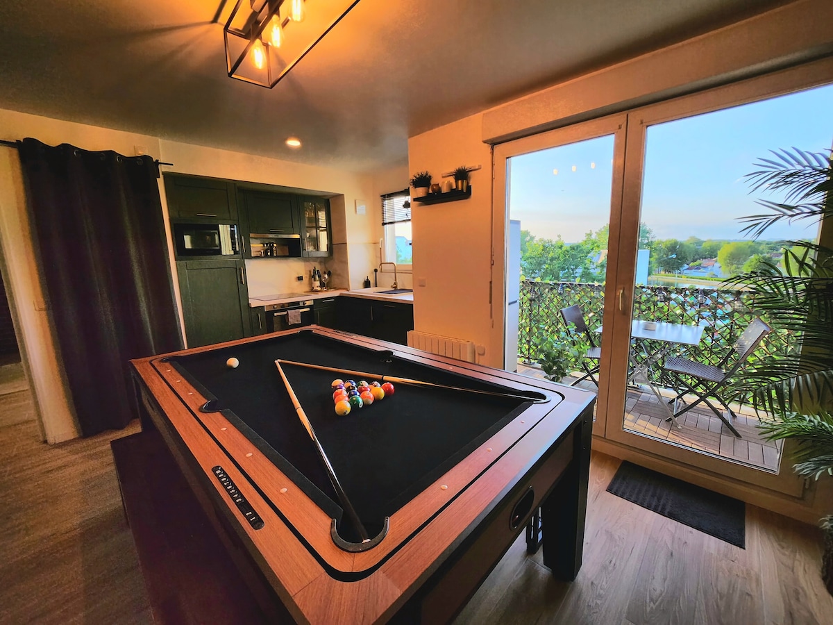 Ce qui rend notre appartement unique, c’est avant tout la proximité immédiate du stade de France, qui est à 50mètres seulement. ⚐ Le style de l'appartement a été pensé pour vous permettre de passer de supers moments: la table de salon est convertible en table de billard, air hockey, ou tennis de table. ❤︎ Vous pourrez vous divertir avec vos amis ou votre famille tout en profitant de la vue dégagée depuis le balcon sur la basilique Saint-Denis et le canal Saint-Denis, sans aucun vis-à-vis. ☼