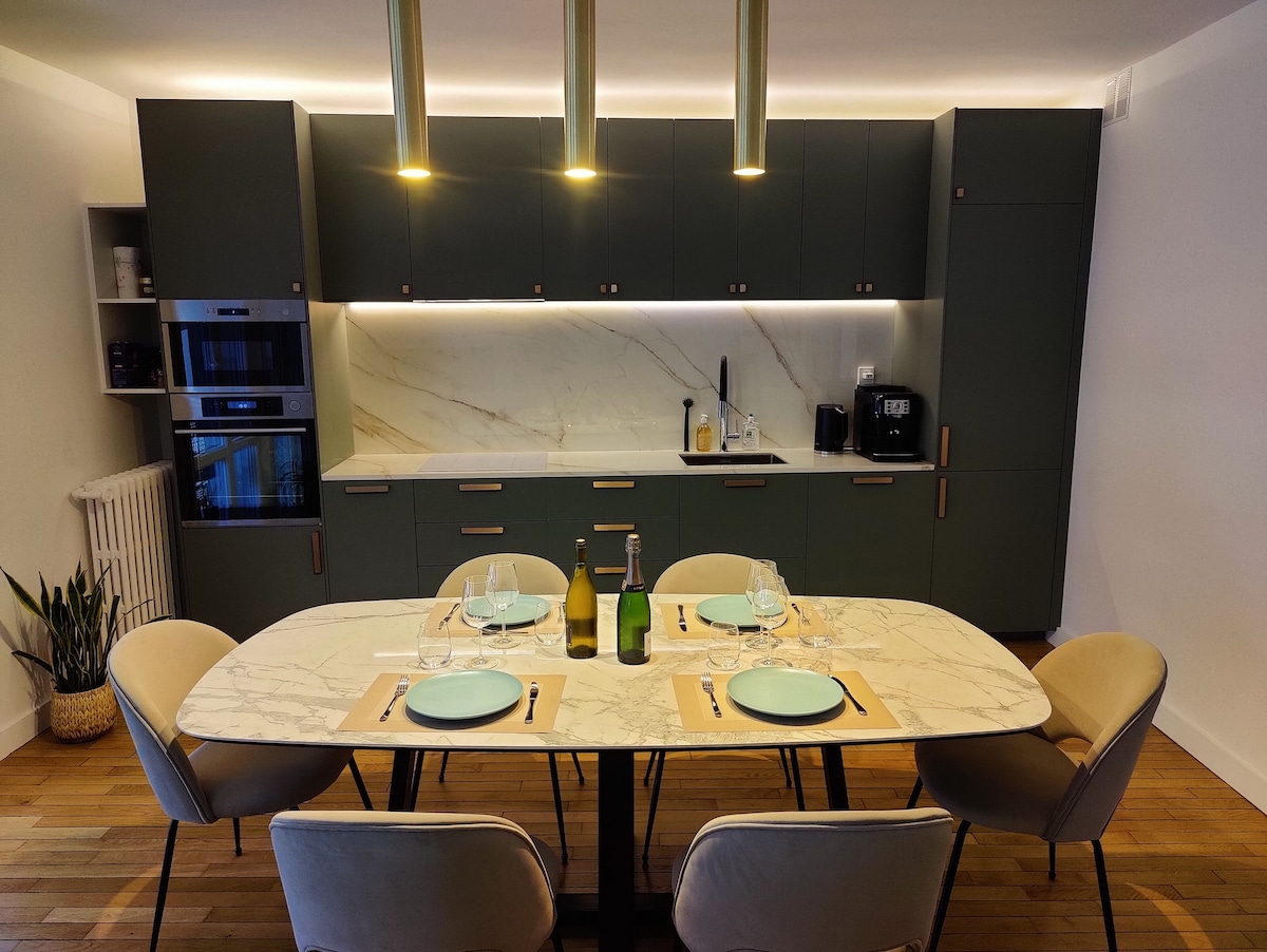 〉Spa Balnéo et salle de cinéma inclus dans la location. Séjournez dans ce bel appart luxueux : ・Idéal pour séjour en couple, famille ou entre amis ・2 lits doubles, 1 sofa-lit et 1 lit simple ・2 salles de bain ・Climatisation, Purificateur d'air ・Wifi gratuit ・2 TV 4K + Netflix gratuit ・Cuisine équipée : four + micro-ondes + lave-vaisselle ・Lave-linge + sèche-linge ・Lit + chaise bébé ・Commerces et métros à proximité 〉Réservez vos vacances dans un quartier vivant et proche de la Tour Eiffel !