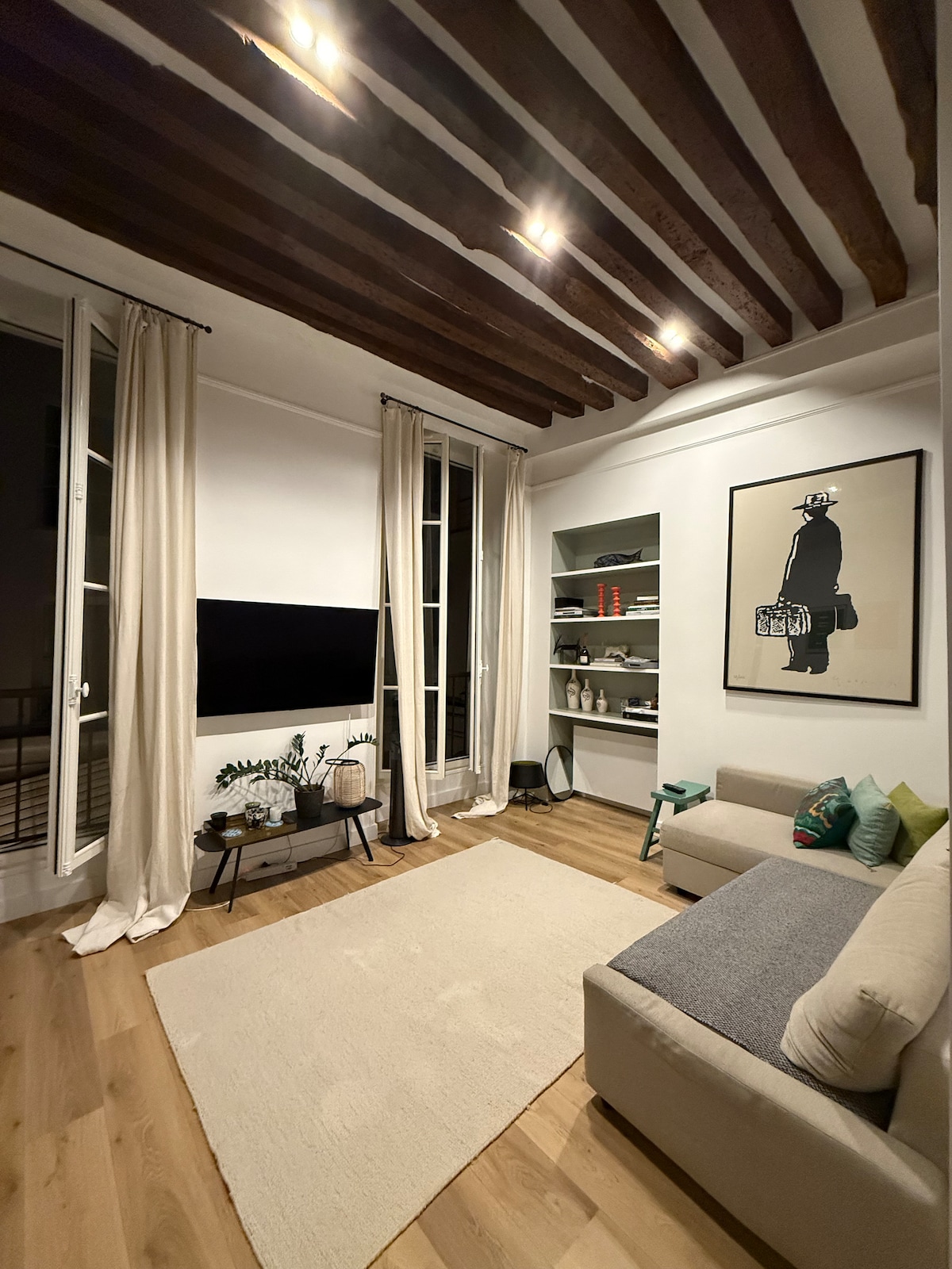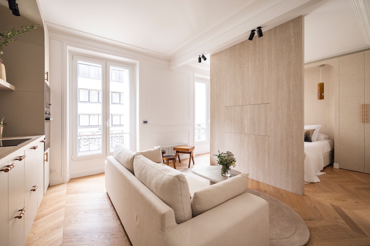 Appartement charmant, luxueux, cosy et lumineux de 31 m2 (1BD - 4P) idéalement situé à Paris 16 dans un quartier central, proche du Trocadéro, et calme (5min du métro Jasmin) avec tout commerce de proximité. Le logement offre des finitions modernes et chaleureuses et un espace optimisé : chambre et salon (canapé lit) séparés par une cloison élégante avec une télé intégrée amovible. Il est entièrement équipé (électroménager, linge, etc.) afin de profiter sereinement de votre séjour.