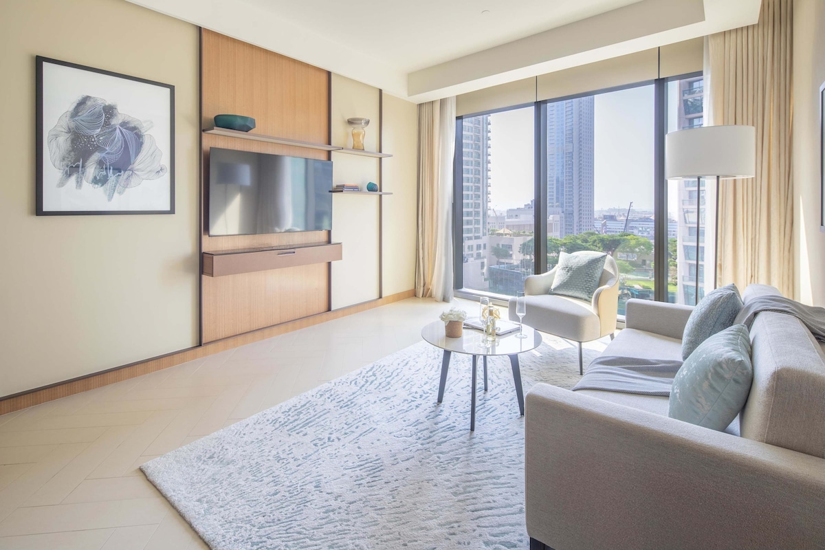 1卧室,可欣赏哈利法塔景观,步行2分钟即可抵达迪拜购物中心