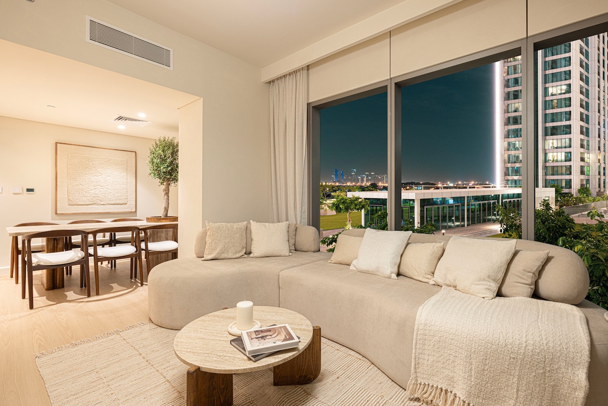 Luxury living in Port de La Mer! Enjoy a King-size Four Seasons bed with premium mattress & linens, sofa bed for 2, safe vapor fireplace, Dyson hairdryer, De’Longhi coffee machine & yoga mat. The dining table doubles as a workspace. Pool, parking & private beach access included. Steps from the sea, cafés nearby, 15 min to Dubai Mall & 20 min to the airport – perfect for guests seeking something special!