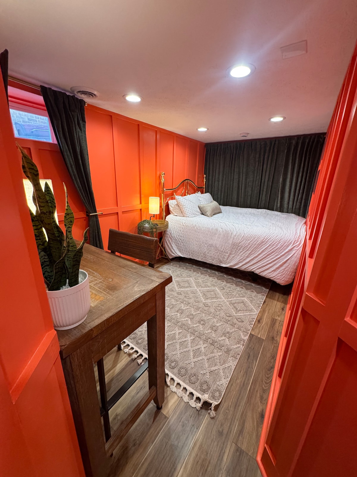 Our Little Boho studio on the top floor of a quiet 4-plex is the ultimate in modern comfort! Every detail is designed with luxury in mind, including a custom kitchen and bath, velvet drapery, and fine finishes. Relax in style with a plush king bed, full-size sleeper sofa, well-equipped kitchen, W/D, patio, and private parking. We are nestled in Little Bohemia, close to downtown, CWS, & the zoo. Enhanced cleaning and self-check-in ensure you're in good hands. Book now for an unforgettable stay!