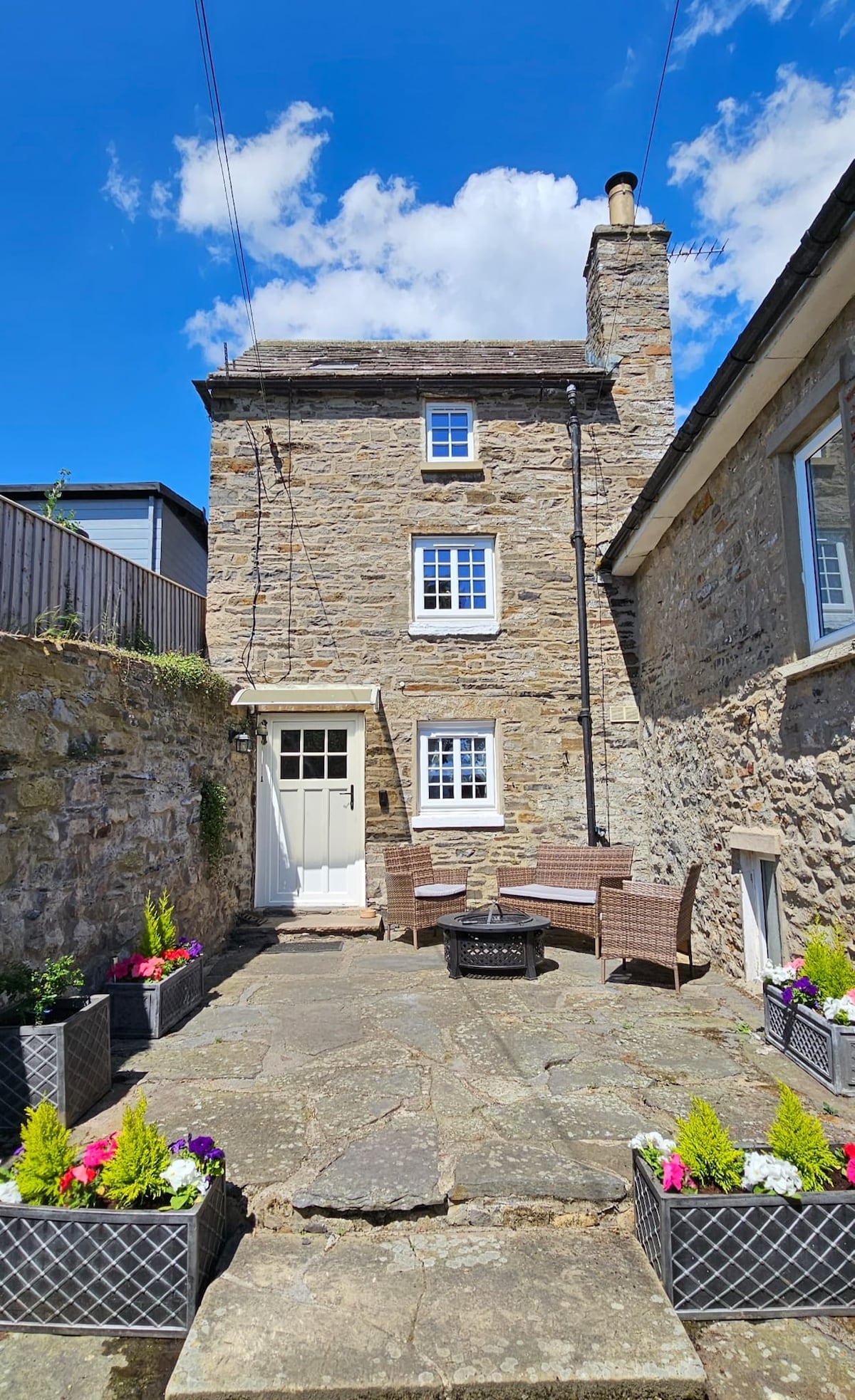 With it's own fenced garden and hidden In the grounds behind The Old Star B&B, this newly renovated, centrally heated stone cottage is well away from the road. Upstairs is an open plan lounge, dining area and fully fitted kitchen with lovely views over the garden and Wensleydale. There are two spacious en suite bedrooms downstairs each with two beds. There is ample off street parking . The village has good amenities and is well placed for walking and touring the Yorkshire Dales.