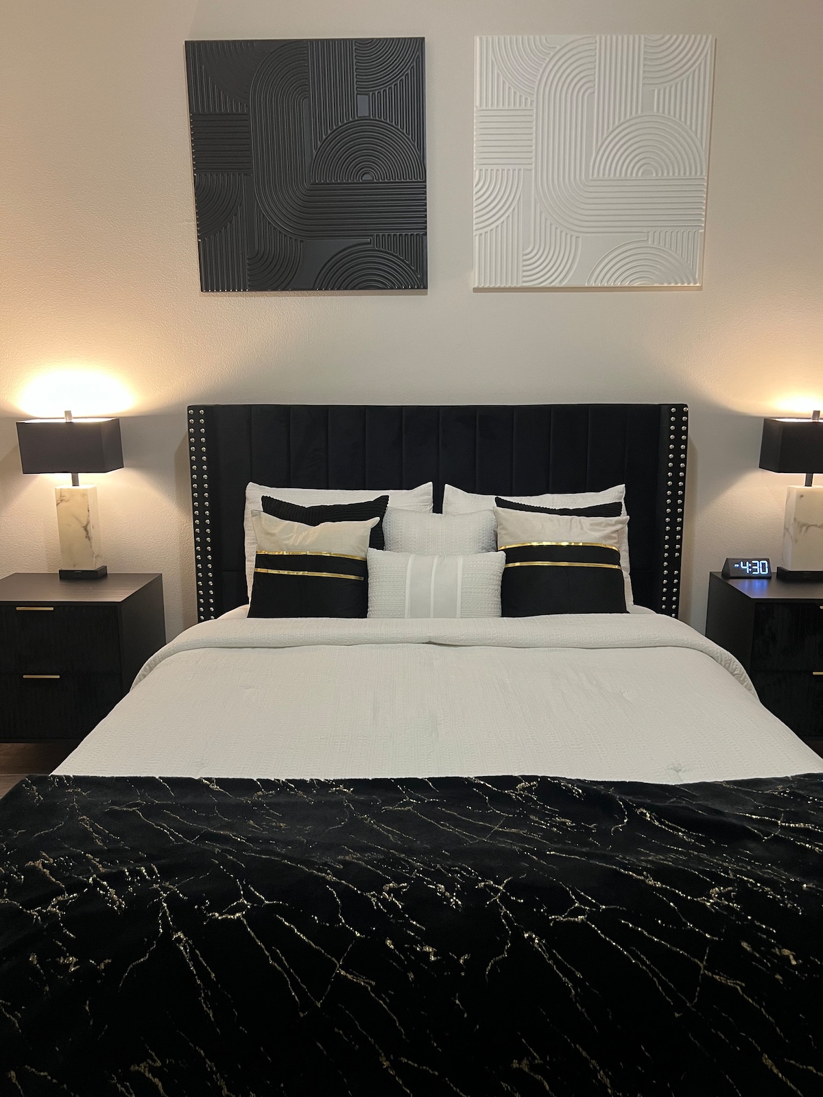 Enjoy a starlight experience in Starlet, a Rolls-Royce inspired 2 bedroom Highrise in the heart of MedCenter/DT HTX. Stay on silk sheets under twinkle lit ceilings. 1 block to rail. Hosting a max of 6 guests w/ 2 queen beds, a large L-shaped sectional, & cot. Enjoy with 2 bathrooms, WiFi, self-entry, washer/dryer, amenities, & patio balcony. 1 free parking spot in secured resident garage. Check-in at 3 pm & check out at 11 am; early check-in maybe accepted. Your Host, @cheyenneandotherthings
