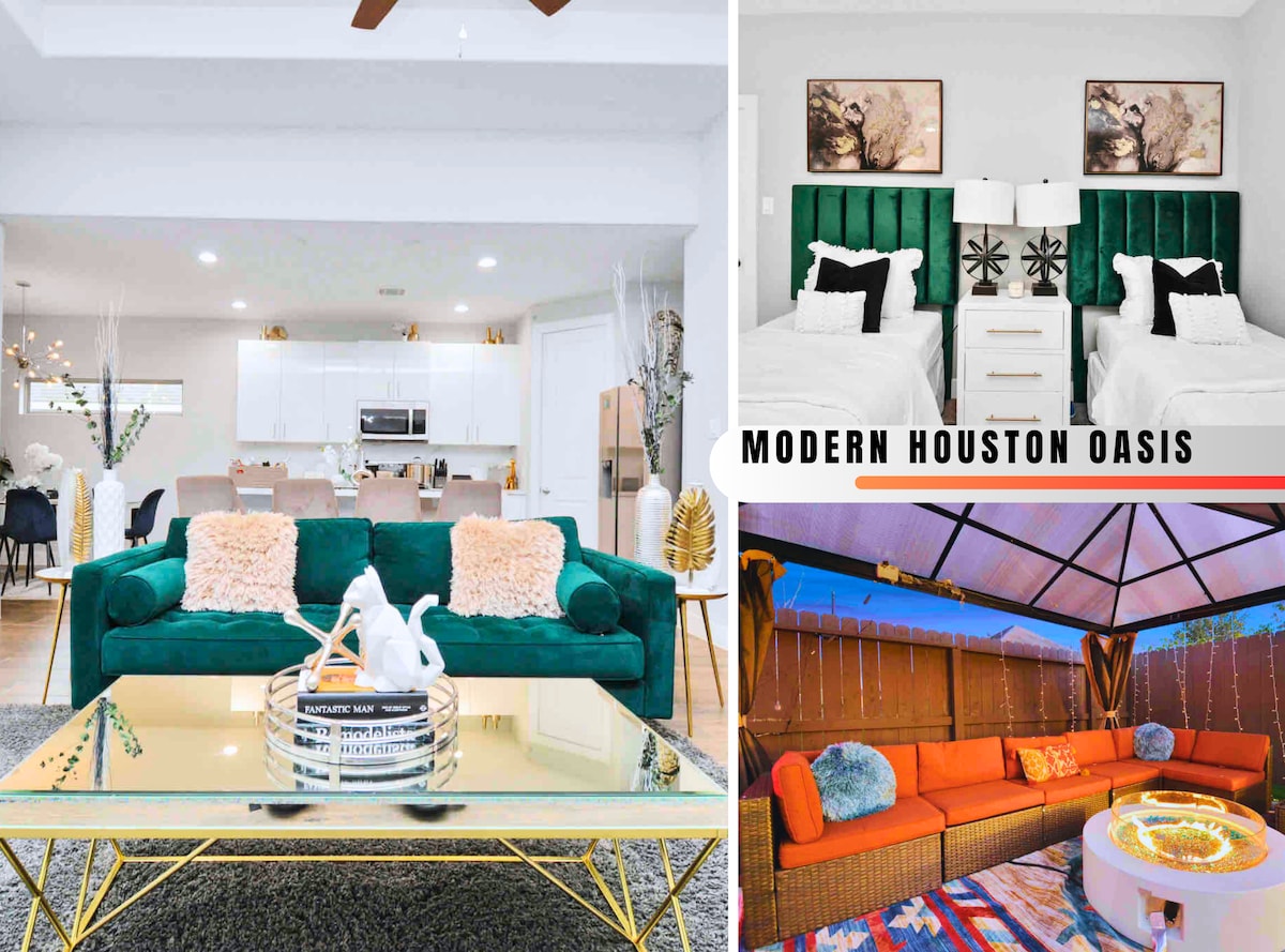 Revel in the stylish design of this recently renovated 5BR 3.5Bath spacious oasis immersed in a tranquil and friendly neighborhood. It offers a luxurious getaway 30 minutes away from Downtown Houston, Medical Center, top restaurants, shops, attractions, and landmarks. ✔ 5 Comfy BRs ✔ Hot Tub & Theater room (Steam and Stream!) ✔ Open Design Living ✔ Fully Equipped Kitchen ✔ Backyard ✔ Office ✔ Smart TVs ✔ Fast Tesla Charger ✔ High-Speed Wi-Fi ✔ Free Parking