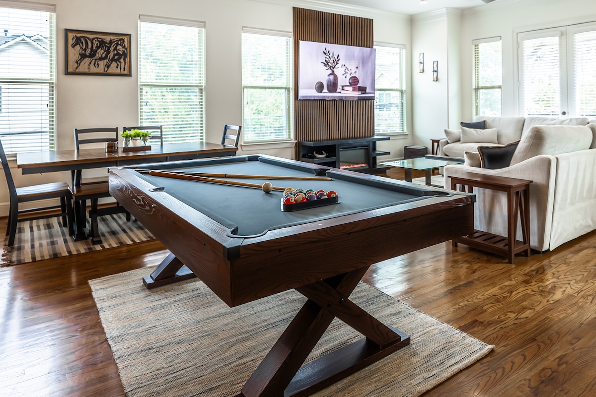 **REACH OUT FOR LONG STAY DISCOUNTS*** Modern & Spacious 3 story Townhome located minutes from Galleria area. Be sure to use our unique, well-equipped Garage Gym and the spacious backyard. It's the perfect home for everyone to come together and enjoy a night of full cooking with our fully stocked kitchen, crafting cocktails, and getting glammed up for a night out. The home accommodates Short & Long-term stays. Two workstations available with fast WIFI 800Mbps.