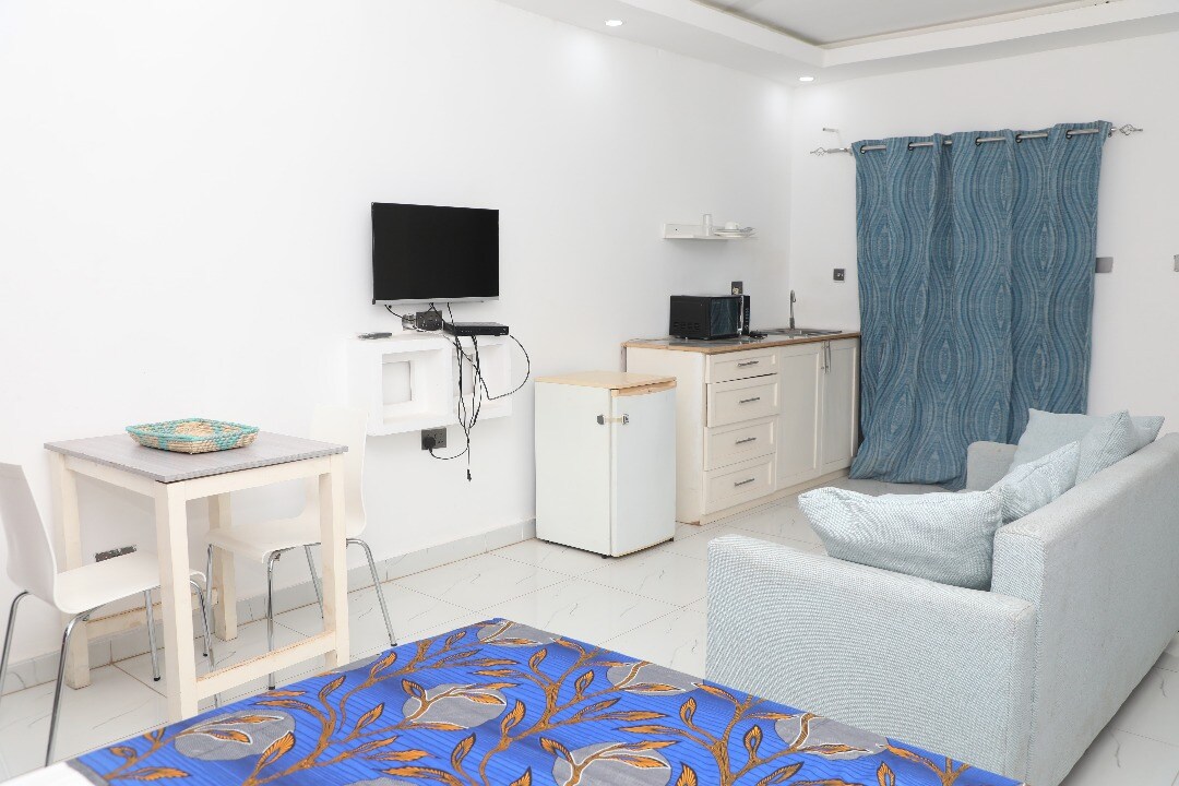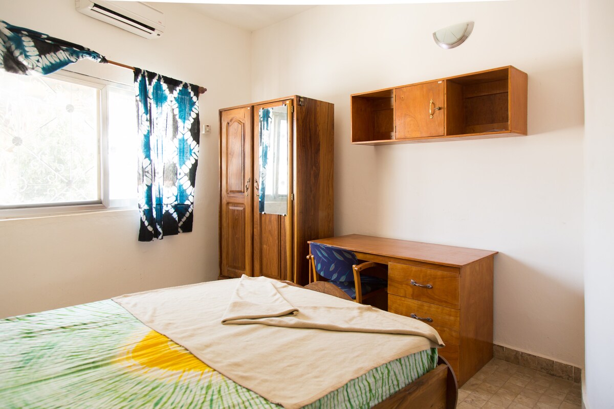 A spacious luxury two bedroom flat in Kerr-Serign . The whole house to yourself.Few minutes drive or walking distance to Senegambia beach, restaurant and clubs.Furnished to a high standard.Living room with air conditioner and two ceiling fans, an open plan kitchen with dining area.En-suite bedroom with ceiling fan and air conditioner and second bedroom with ceiling Fan.Please note room price doesn’t include electricity .Usage will be charged separately depending on your consumption.Many thanks