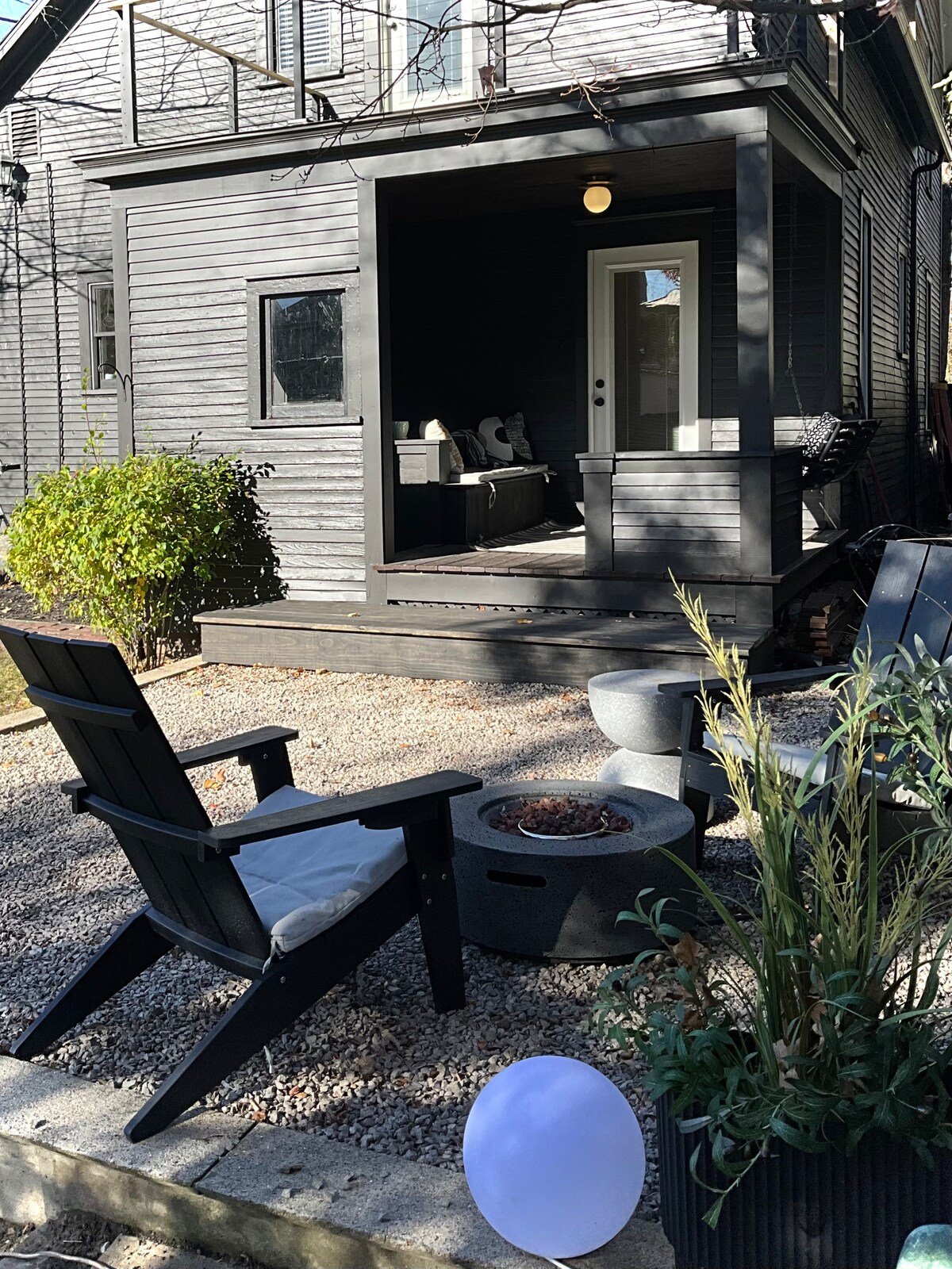 This large studio is in the lower level of our carriage house. You will have you own entrance to your quiet and quaint space. The studio has a comfortable queen bed, a living room area with a couch, chair, desk and large screen tv. Your belongings can be stored comfortably in the walk-in closet. There is a full-size kitchen and bathroom with a claw foot tub. You’ll open your front door to a beautifully landscaped yard. All within walking distance to bars, restaurants & great performances venues.