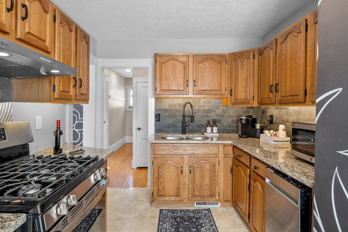 Apartment 1 is the lower unit of a charming two-unit home, offering a cozy stay with historic character. Enjoy original hardwood floors, beautiful woodwork, & built-in cabinets in the dining room & kitchen. A large dining table is perfect for meals or work. Relax with radiant heat, blackout blinds, ample closet hanging space, & 680-thread-count sheets. Bedroom 1 features an original pocket door. Each unit has its own private entrance; please note the upper unit may be occupied during your stay.