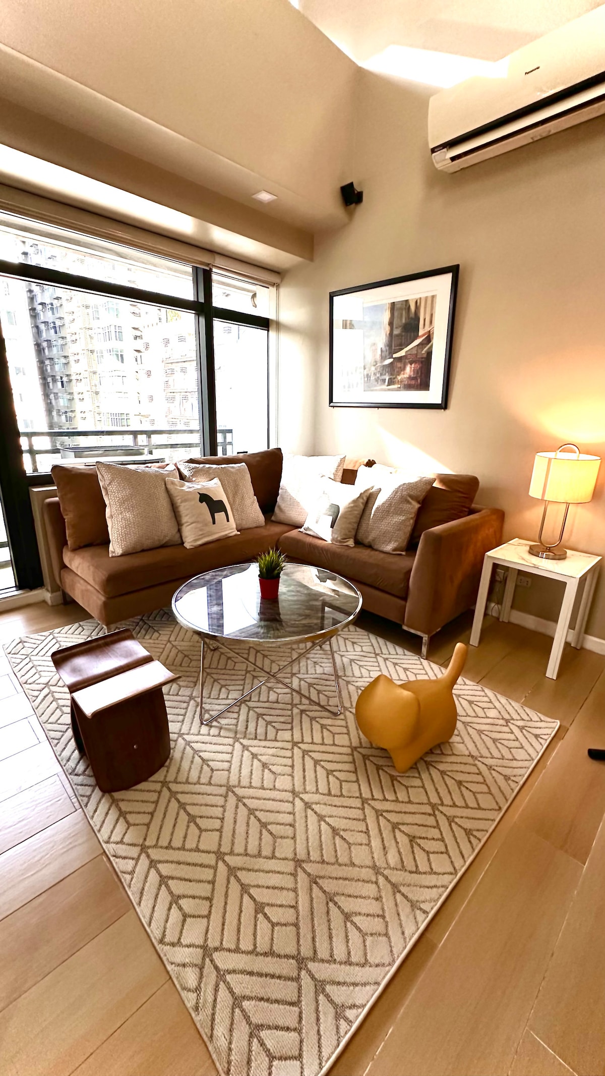 Welcome to our airy contemporary and Mediterranean-inspired Tahanan, a 25 sqm studio unit in Mandaluyong, just a short walk from Rockwell and Powerplant Mall! We’ve designed our space to provide a comfortable stay while capturing stunning sunset views, as well as views of Mandaluyong and Makati from our balcony. Whether you’re visiting for work, leisure, or a mix of both, our well-equipped Airbnb is the perfect base for exploring the vibrant cities of Mandaluyong and Makati.