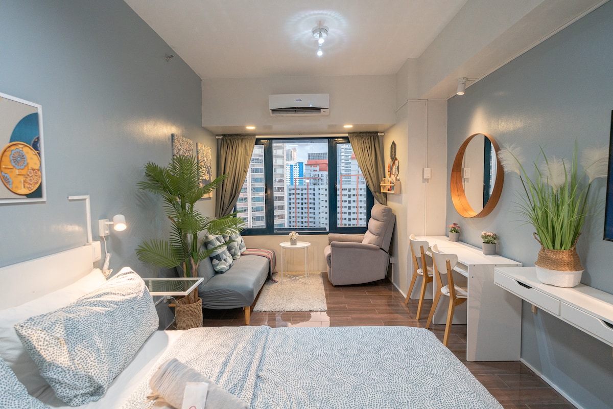 Modern suite in Makati|Skyline|Pool & Mall access