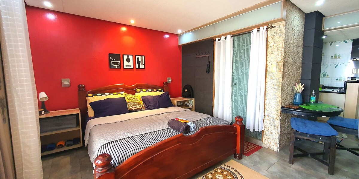 Located in the center of Makati red-light district, this one bedroom apartment is renovated & fitted out to suit an endless summer vacation vibe With Netflix on smart TV, split type AC in the bedroom, comfy queen bed, love seat, full kitchen plus a spacious balcony with the best view of P.Burgos Street below 🚬 Registered guests are allowed to have visitors but room provisions can only accommodate 2 to 5 pax staying overnight. If you prefer utter silence, this might NOT be the place for you‼️
