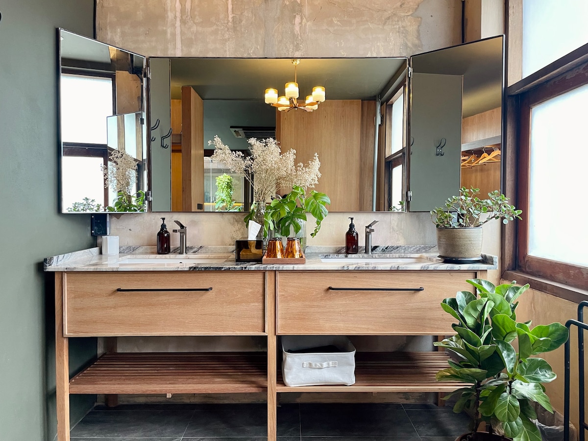 ☆ Welcome to your creative entire floor retreat in Bangkok ☆ Stay in a thoughtfully designed suite overlooking the peaceful Ong Ang Canal, just a 3-minute walk from Sam Yot MRT. This quiet space blends vintage charm with minimalist, modern design. Created by our family of architects, Poco House sits just above our local-loved café, Piccolo Vicolo. Thoughtfully renovated with warm wood, concrete textures, and greenery, it’s a calm escape in the heart of Bangkok’s historic Phra Nakhon district.