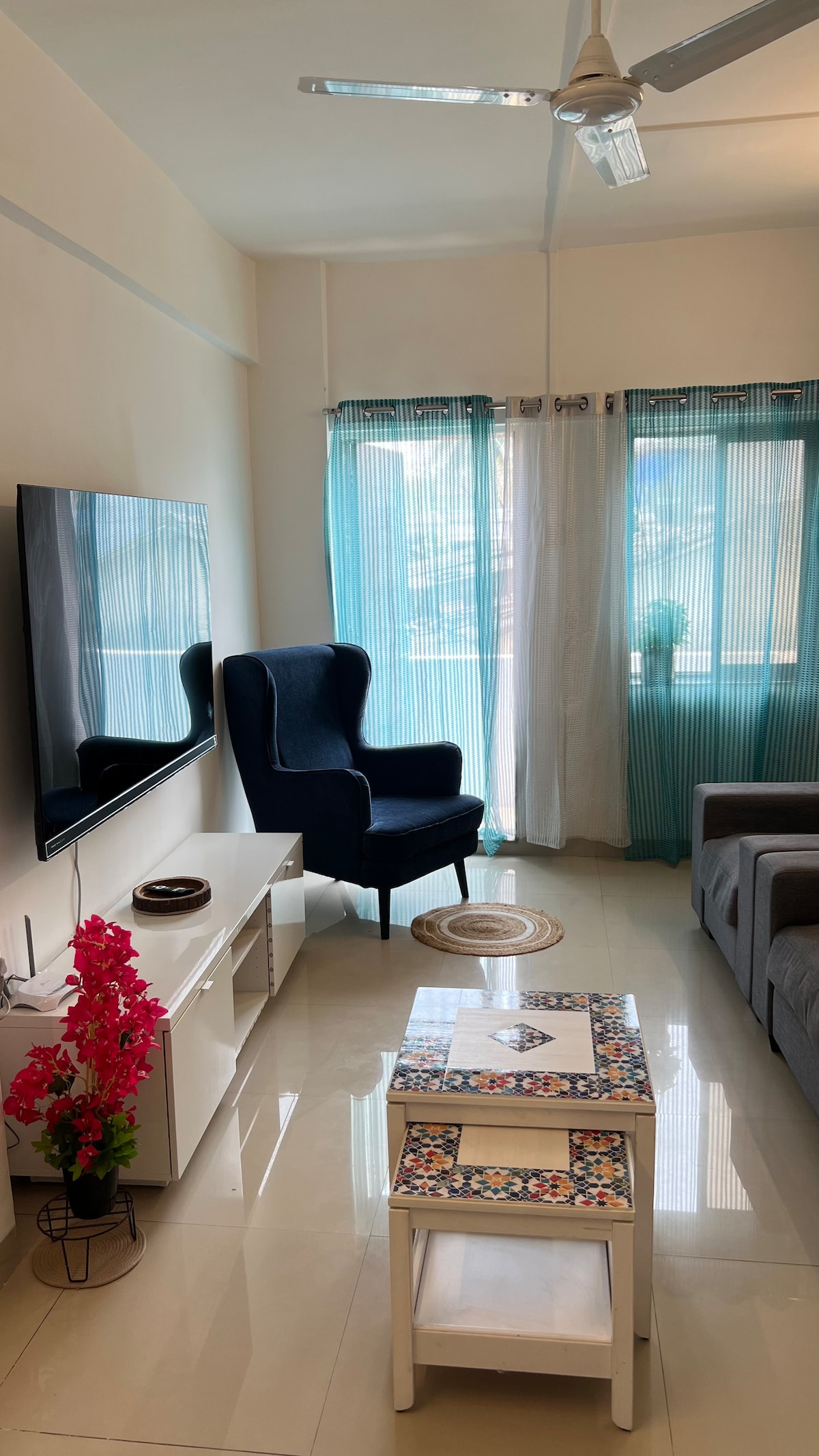 Experience luxury living at its finest in our Top-Floor Luxury Apartment with Projector. One of the highlights of our space is the state-of-the-art projector screen, offering an immersive viewing experience like no other. Whether you're catching up on your favorite movies or hosting a movie night with friends, the larger-than-life screen will transport you into another world. Step out onto our balcony and be prepared to be mesmerized by the scenic views stretching as far as the eye can see.