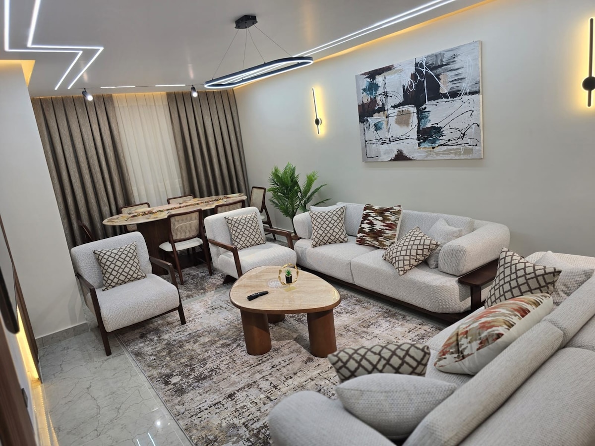 Pyramids view with10 mins to visit ,(3 rooms/2 bathrooms) It's an entire apartment that no one shares with guest. Upscaled elite quiet area for families/groups , 15 mins walking to GEM,( 30 mins by car to old museum) ،what makes us special that we are not (hostel or inn) we are a real cozy house, (host) and (Guest) no employees (We treat our guests honestly as friends, not just guest. We can manage the pick up and drop off from and to the airport if u want. U also can ask for recommendations .