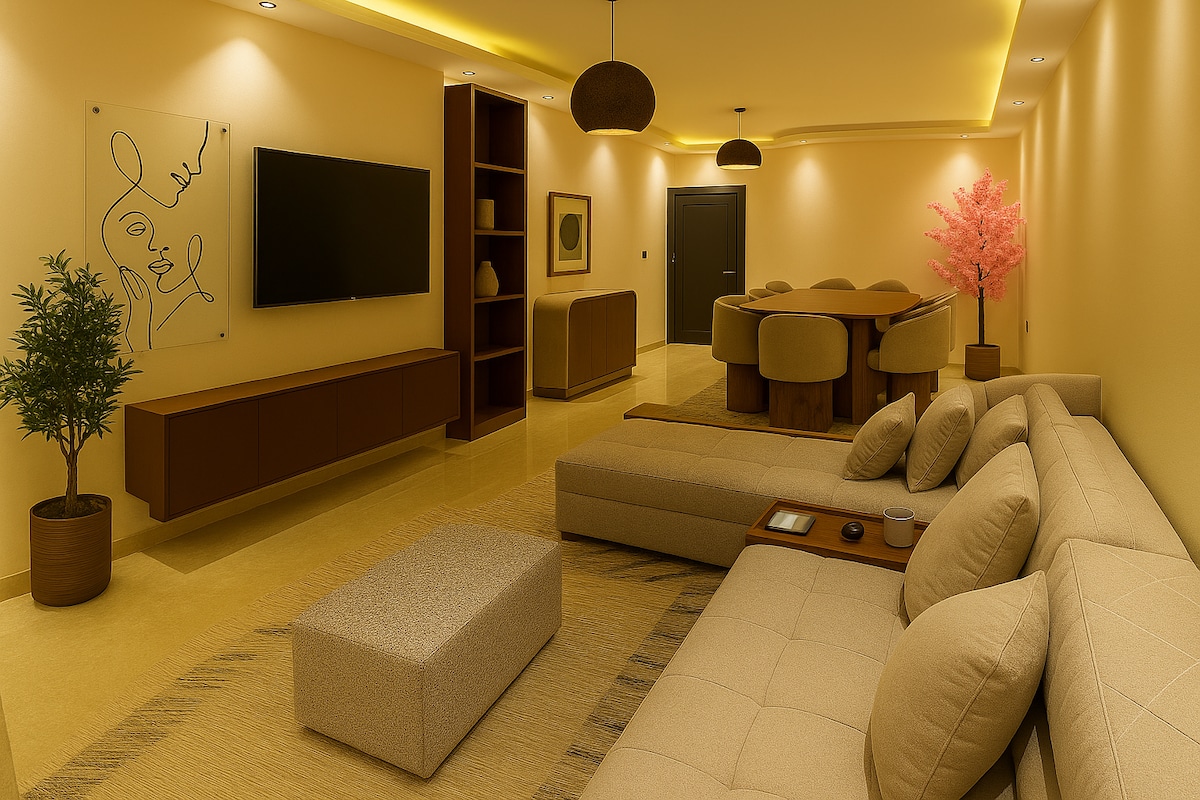 Enjoy a wonderful travel experience in this residence. Experience a blend of luxury and history in our elegant studio, located steps from the famous Pyramids of Giza, the Great Sphinx, and the Grand Egyptian Museum. Whether you're a history buff or looking for a picturesque retreat, this wonderful space offers the perfect stay for unforgettable moments. The elegant interior features luxurious furnishings, rich fabrics, and modern amenities. Relax in an atmosphere of peace and tranquility.