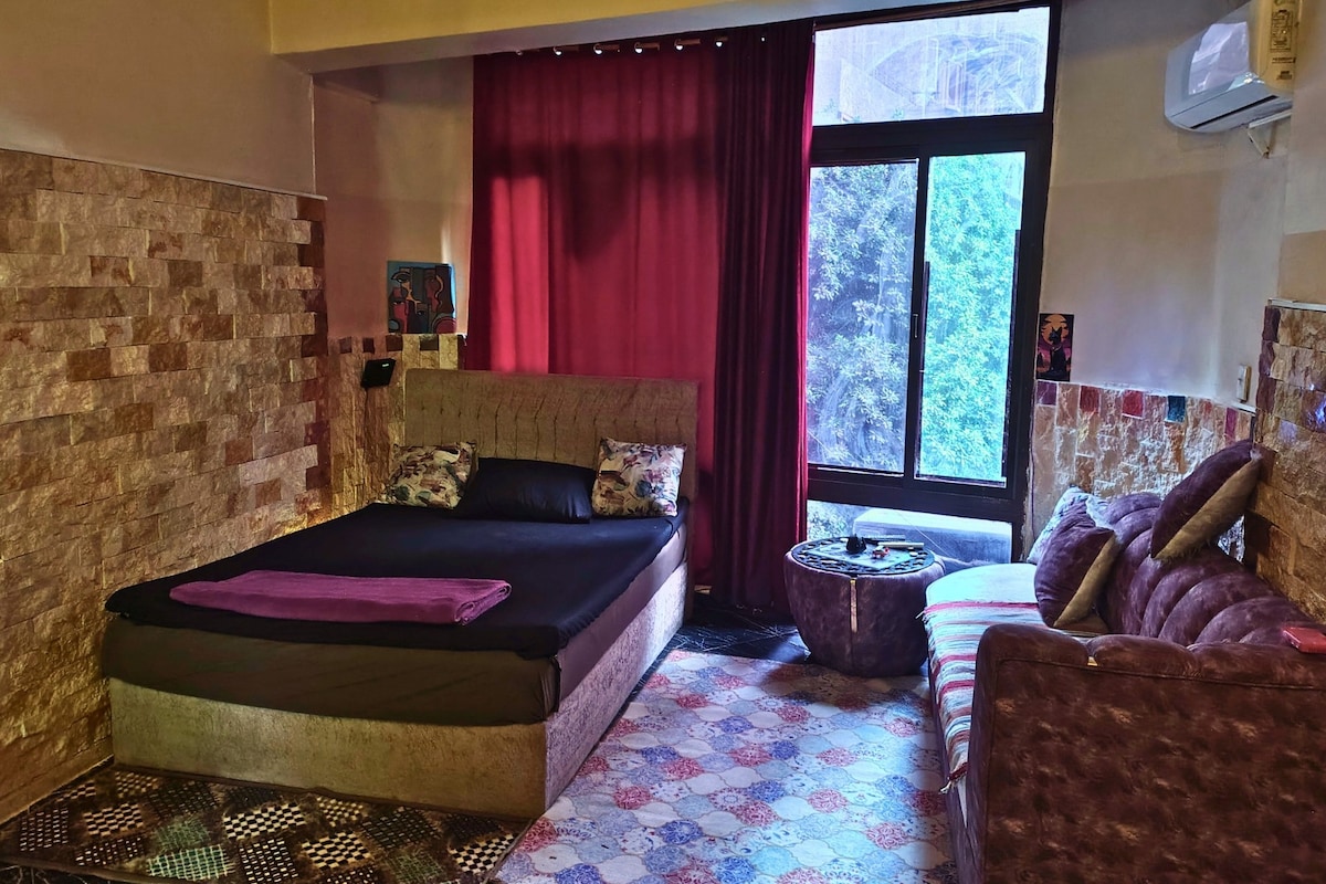 Immerse yourself in the authentic essence of Egyptian culture in our charming studio, located in a local but strikingly beautiful area! Just a 10-minute walk from the Egyptian Pyramids The authenticity of the location allows you to explore the local charms, from vibrant markets to authentic restaurants, where you can delight in delicious Egyptian cuisine. we offer 24/7 security and care services to ensure your stay is completely stress-free and worry-free.