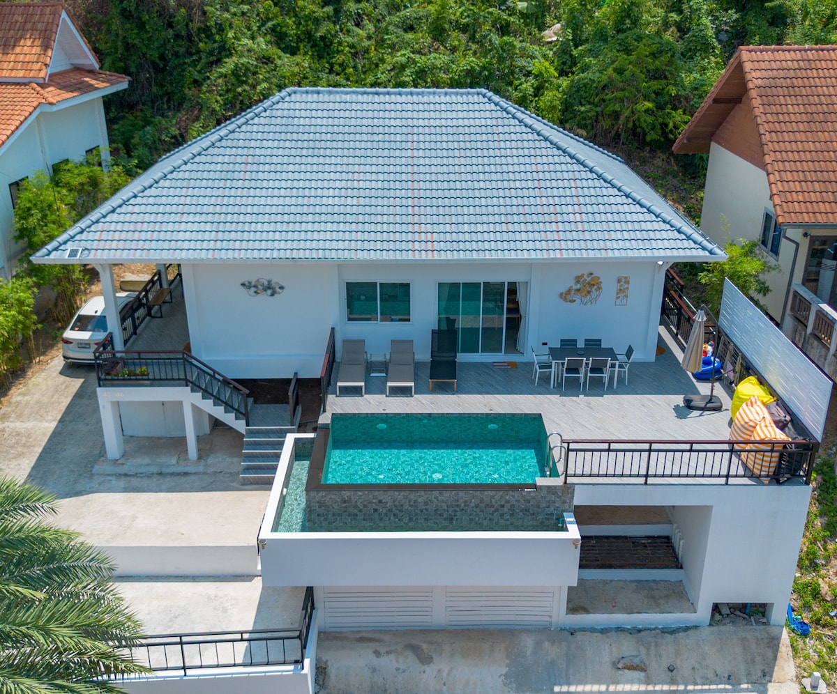 豪华3卧丛林别墅-无边泳池和海景