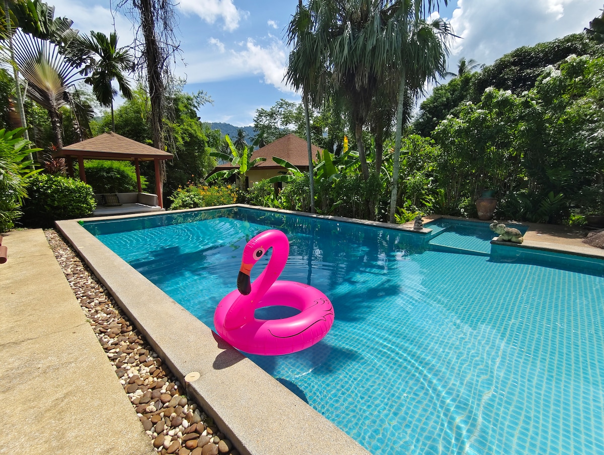 LOGEMENT CHARMANT ET COSY Découvrez notre petit coin de paradis situé à Lamai en bordure de forêt, à seulement 3 kms du centre-ville et 3 kms d'une des plus belles plages de l'île. C'est un bien unique: un bungalow pour 2 personnes avec son lit king size, sa salle de bain privative ouverte, sa terrasse privée, un jardin luxuriant et la piscine ! Vous n'avez plus qu'un objectif: profitez ! La piscine de 12m x 6m vous attend ! L'endroit idéal pour décompresser! Service ménage inclus tous les jours