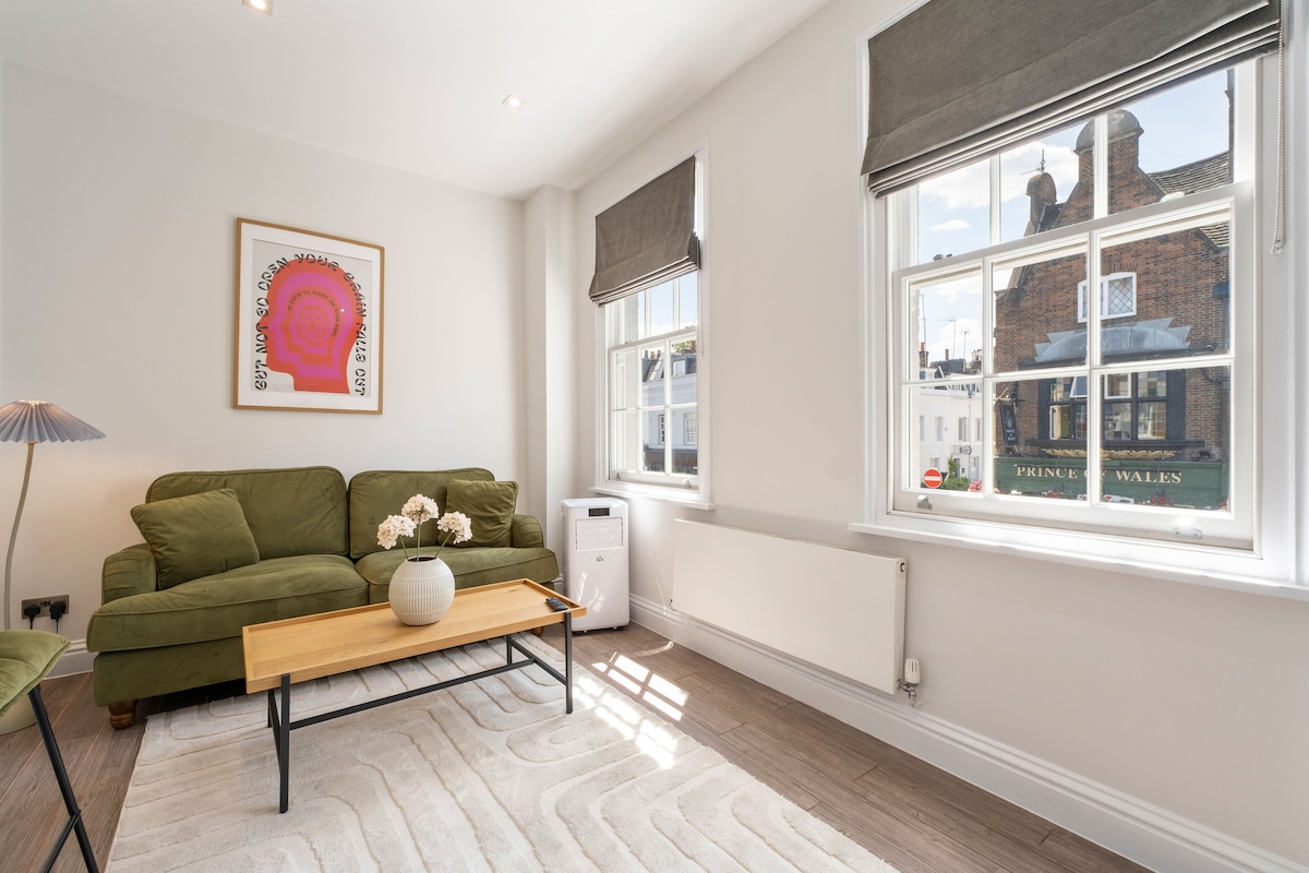 This beautiful 1 bed apartment is set within a grand period building with stunning high ceilings throughout. The reception room boasts a Sonos sound system & floor-to-ceiling windows opening onto a private balcony. The kitchen is fitted with integrated appliances, luxury cookware & dining area next to a window seat with afternoon sun. The master bedroom features a walk-in wardrobe, en-suite bathroom & faces west. High speed wifi (145Mbps), desk, and smart TV included.