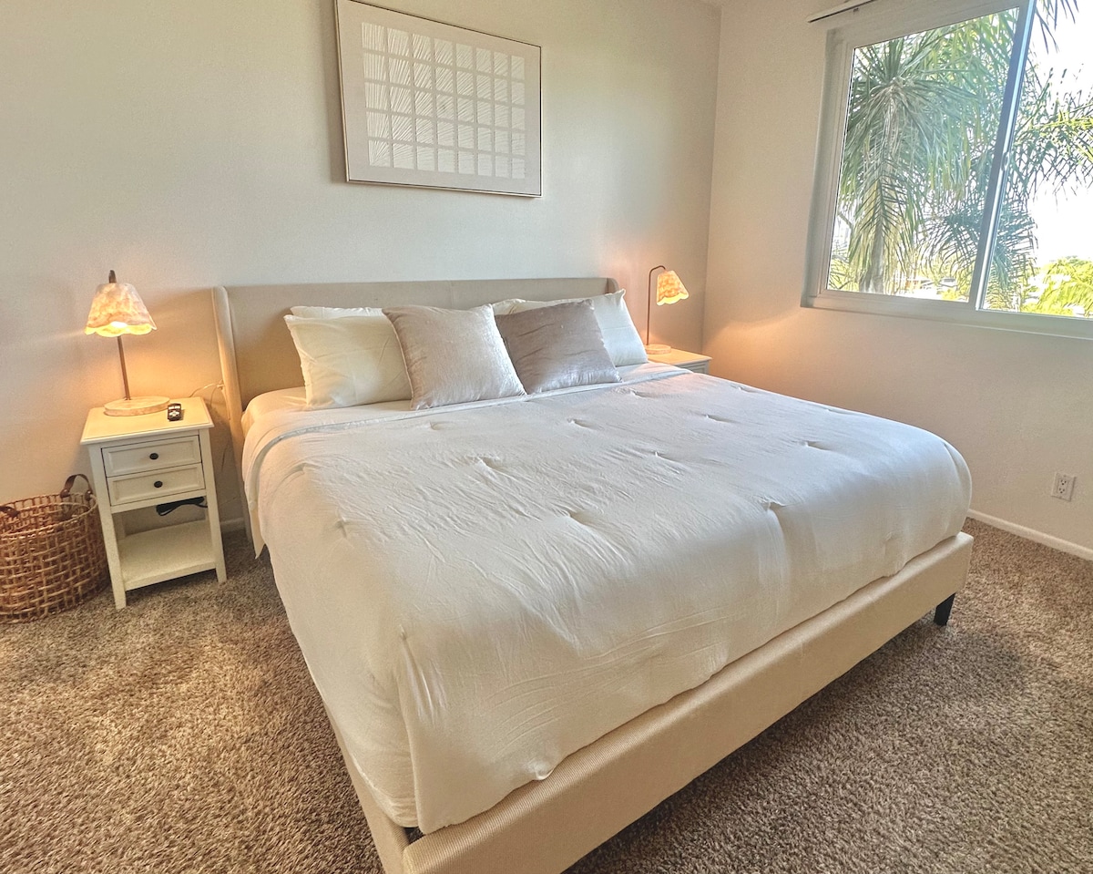 This quiet, designer bright & airy romantic bungalow is on the historic Venice Walk Streets. Fully modern open floor plan with chef's kitchen, restaurant-grade espresso machine, 50" flat screen TV, Sonos sound system throughout the property, wi-fi and more. Beautiful grassy front yard on the peaceful tree-lined walk street with hanging porch swing, breakfast table and more. Private rear patio with expansive outdoor seating (perfect for lazy sunny days), 6 person hot tub and extra parking.