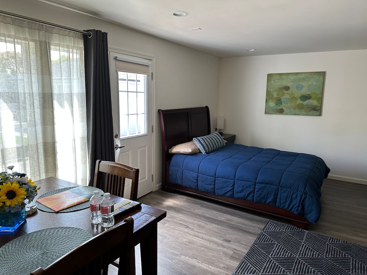 Discover tranquility in our light-filled guesthouse, nestled in a charming historic neighborhood. Centrally located, it's perfect for exploring the city’s renowned attractions. Enjoy the peaceful ambiance with a comfortable queen bed, 65" 4K TV, and permit parking. Cleanliness is ensured by our dedicated professional housekeepers. The guesthouse, separate from the main residence with a private entrance, offers total privacy and access to a fully enclosed backyard.