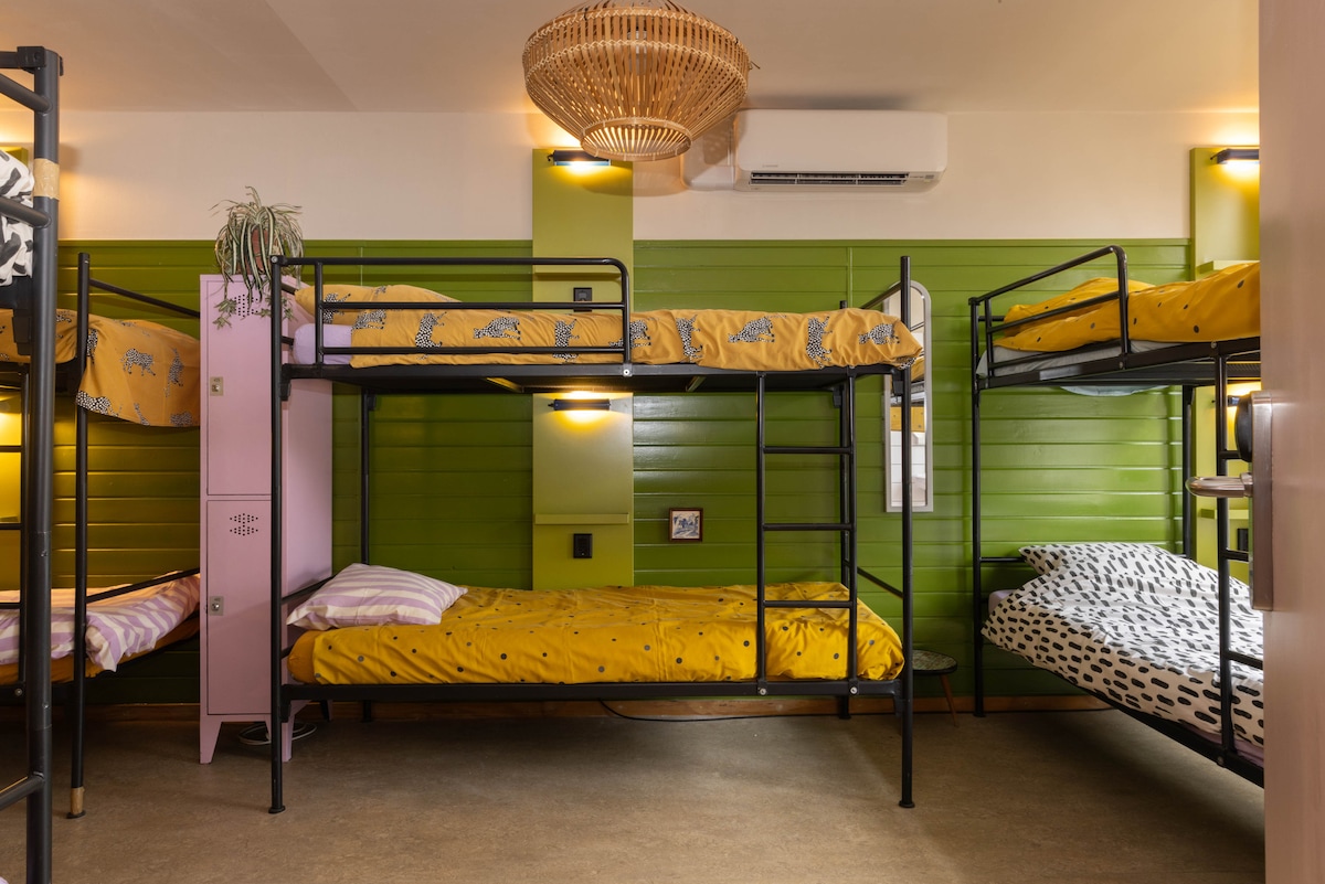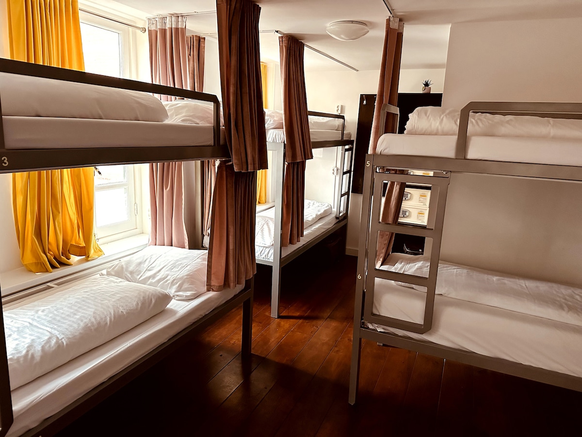 Book a bed (or more) in our shared 4-Bed Dorm at Generator Amsterdam. This room features 2 bunks (4 beds) and a private bathroom, offering a comfortable stay for travelers. Each bunk is equipped with a light, personal shelf, USB charging station, and under-bed lockers. Pillow, duvet, and linen are included. Towels are available at reception for a small fee. Please note, this room is for guests aged 18 and over only. Perfect for those seeking a social yet comfortable experience.