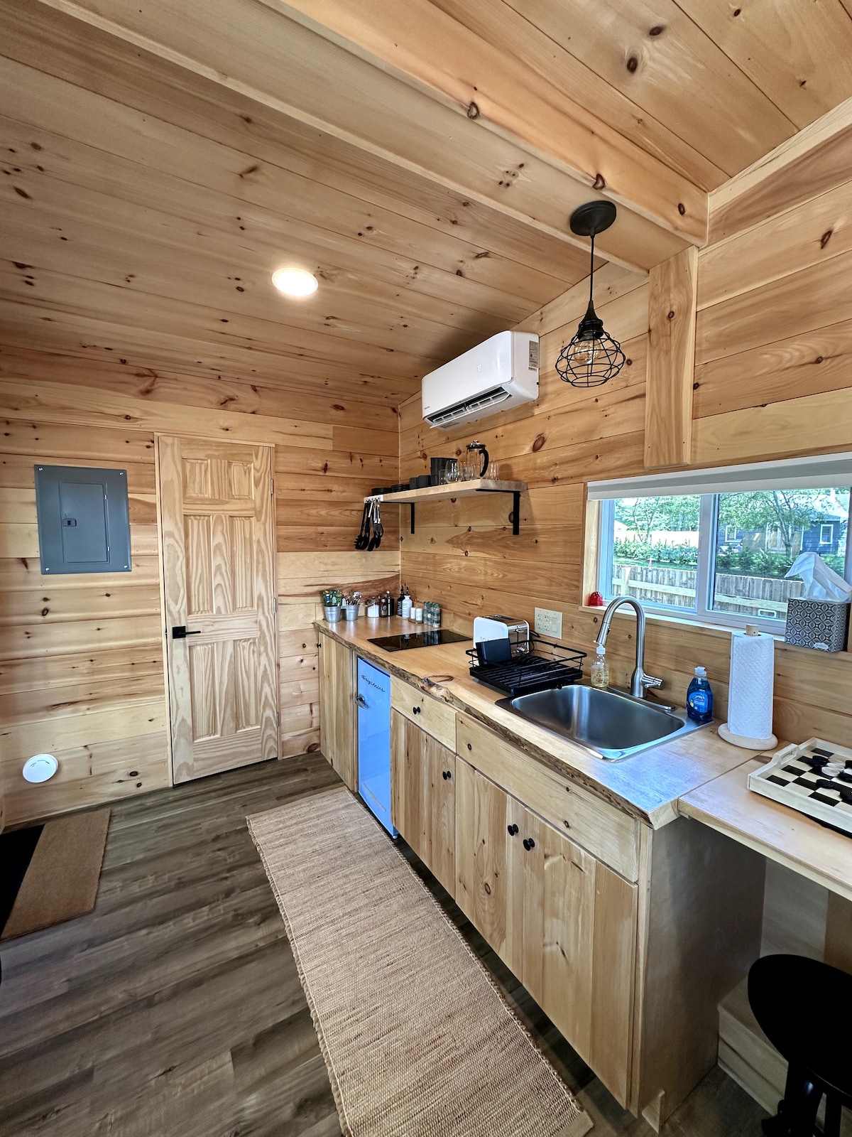 A little cabin on our property in Hither Woods. A cozy hideaway conveniently located 12 minutes walk from Gurney's Beach Resort, 16 minute walk from public path to beach, and 6 minutes drive from Montauk town for restaurants and nightlife. Good for couples and solo adventurers, the space is private and homey, with outdoor shower and Chimenea fire pit. The main house is 65ft away, but we honor your privacy. The cottage comes with WiFi, window A/C and complimentary coffee or tea. Parking for 1 car