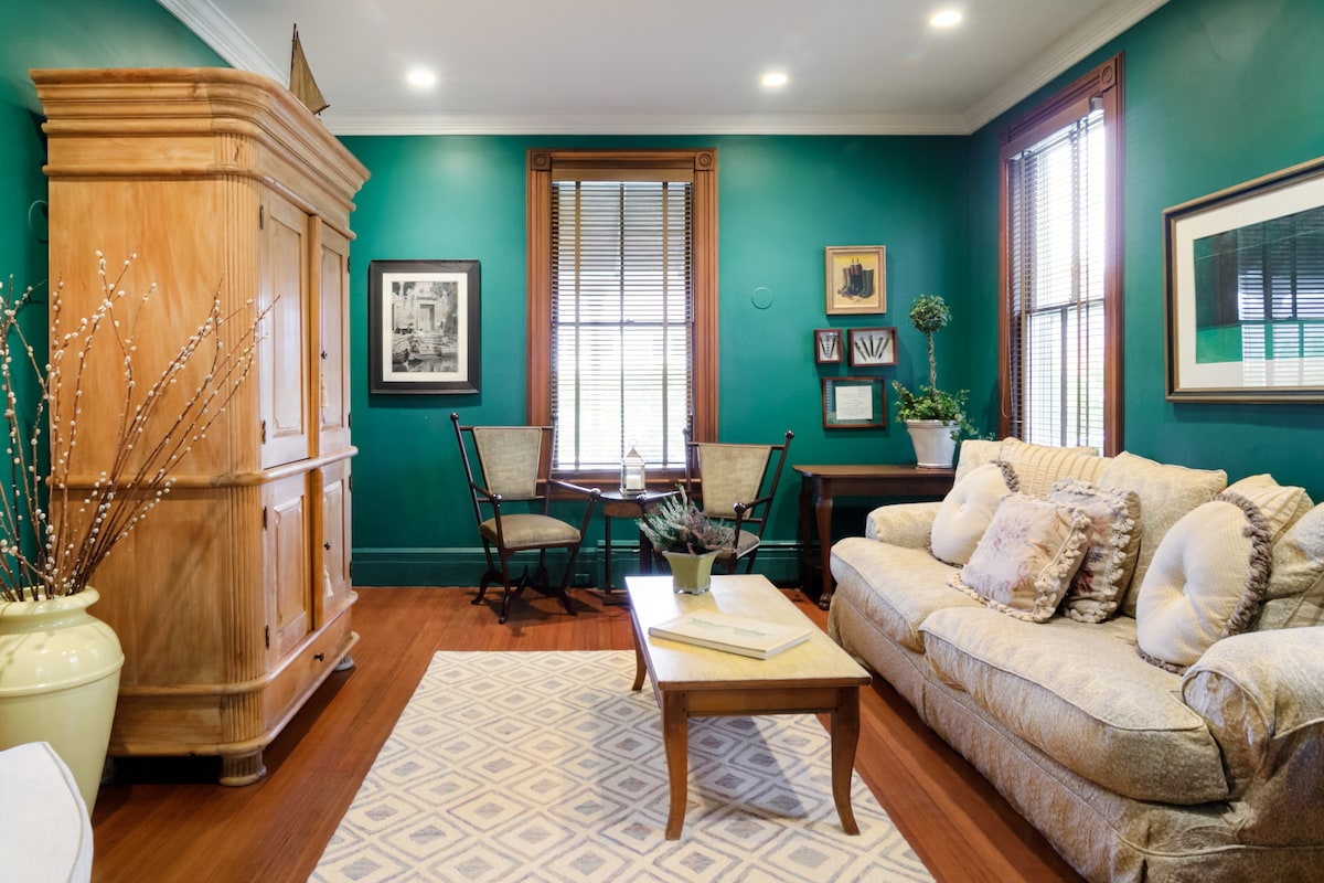 CHECK OUT OUR LOW SEASONAL RATES 50% OFF PEAK SEASON PRICES 6 WINERIES IN UNDER A MILE NO CLEANING FEES NO EXTRA PERSON FEES FREE BIKES FREE BEACH PASSES We're a genuine, licensed B&B. Experience this Insta-ready, newly renovated 1820 farmhouse. Your comfort and relaxation are our goal; designer flourishes are inside and out, filled with unique all-new furnishings. Our Salon features the latest in the arts: sculpture, painting, poetry, readings. Nothing has been overlooked.