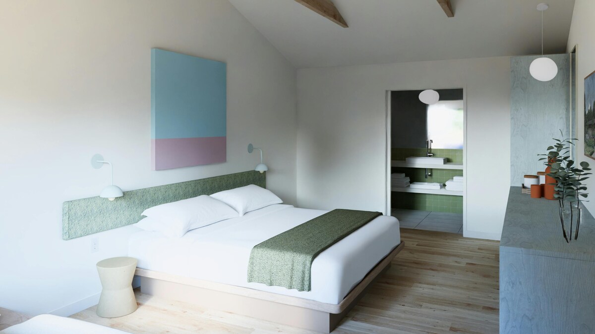 - Airy guestrooms rock vaulted ceilings and a soothing, nature-inspired vibe, plus mini-fridges and Flamingo Estate toiletries. - Borrowable bikes make it easy to explore the area's oh-so-idyllic country roads, Westhampton's downtown or the beach. - Evenings are best spent by the firepits (ideally with a glass of wine in hand).