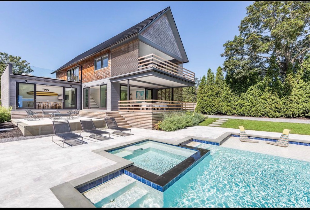 Chic & Luxurious North Fork Farmhouse Retreat Set on a private 1-acre lot, this stylish farmhouse offers a pool, lounge areas, and refreshing ocean breezes. Just 1.5 hours from NYC, you’ll be minutes from beaches, wineries, farm stands, hiking, and golf. Inside, enjoy modern interiors, a full kitchen, and fast Wi-Fi. Perfect for families, couples, or friends, this retreat is ideal for a peaceful escape, remote work, or exploring wine country near the Hamptons and North Fork.