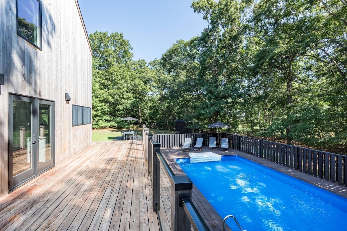 Relax with friends / family at this home in a magical setting overlooking Lily pond Completely private but 5 mins to Sag Harbor downtown / restaurants / Havens beach, and 10 mins to Bridgehampton. Location, location! And Views! - 3 Beds and 2.5 baths + pool house - Pool house with twin sofa bed + full bath - 50ft heated Gunite pool (125/d extra to heat) - Outdoor deck overlooking pond - Amazing views! - Fire pit with Adirondack chairs Unique house to unwind while being close to the action