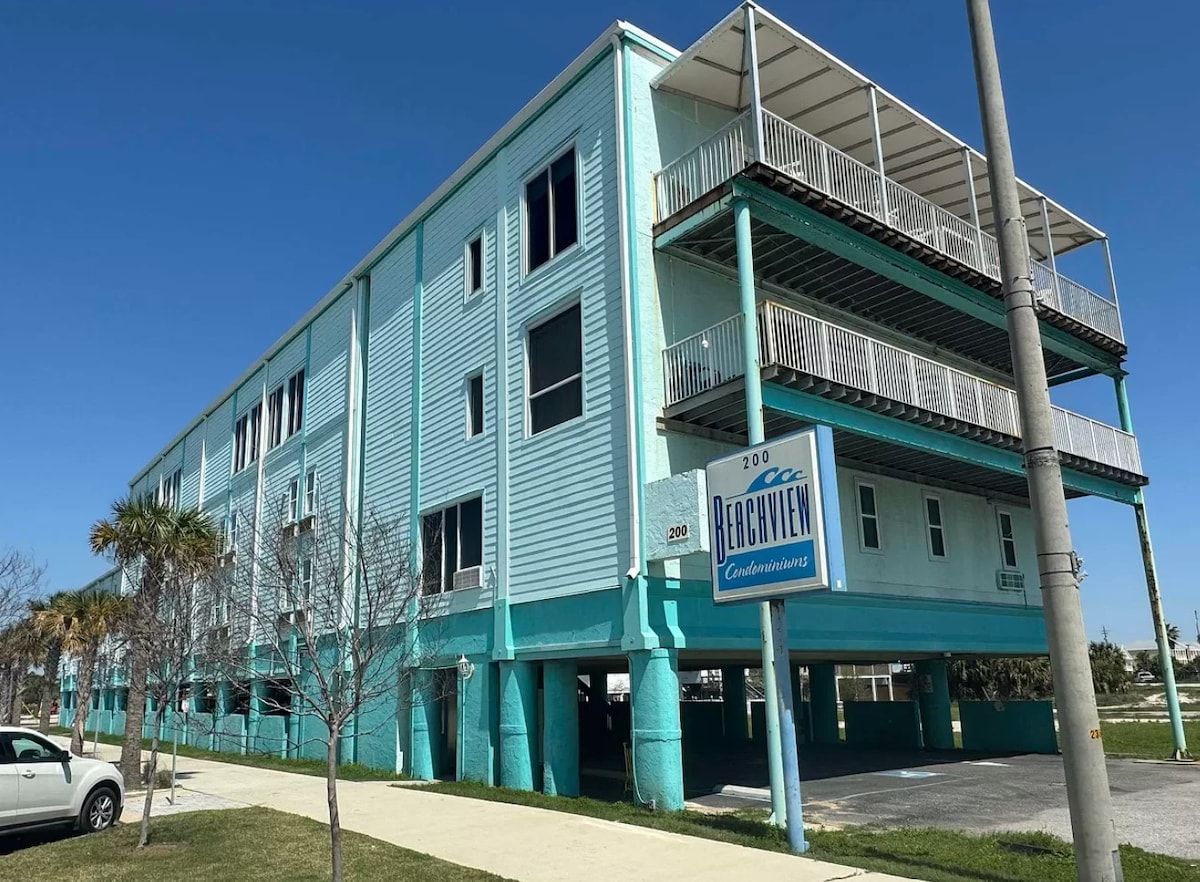 Pack your bags for a memorable vacation soaking in the sun and enjoying the laid-back lifestyle of the beach. Located right across the street from the white sandy beaches of the Gulf and Hangout. A stop light at the crosswalk makes it easy walking to attractions, restaurants and shopping. Our condo has everything you need. A queen bed along with a mini fridge, microwave, coffee pot, countertop oven, work space and large flat screen tv. ONE FREE PARKING PASS