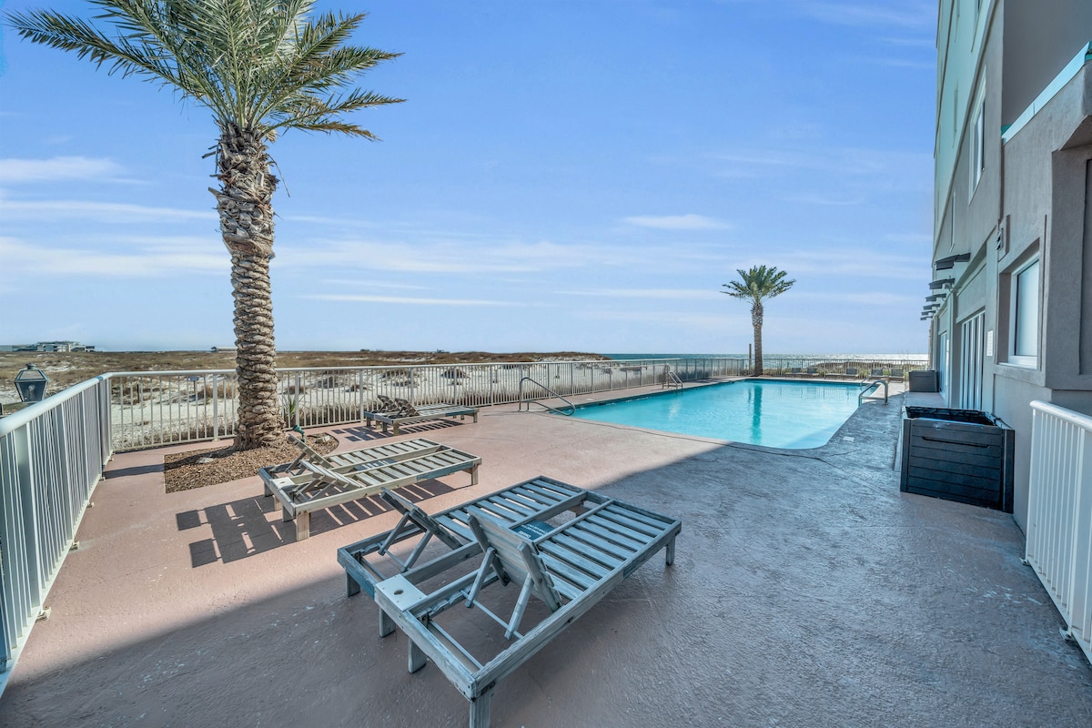 Bring your flip flops & kick back in this beachy condo overlooking the Gulf of Mexico. Beach Haven has front row seats and sweeping surf views of the Gulf and the State Pier from a curved balcony! Plus enjoy indoor/outdoor pools, hot tub & sauna! Coveted location is on the less busy end of the beach near Pier, Gulf State Park & Sea and Suds. Perfect for couples, solo, business, sport events & small families. Inquire for *snowbird* rates. Enjoy gorgeous sunsets, the sound of the surf and RELAX!