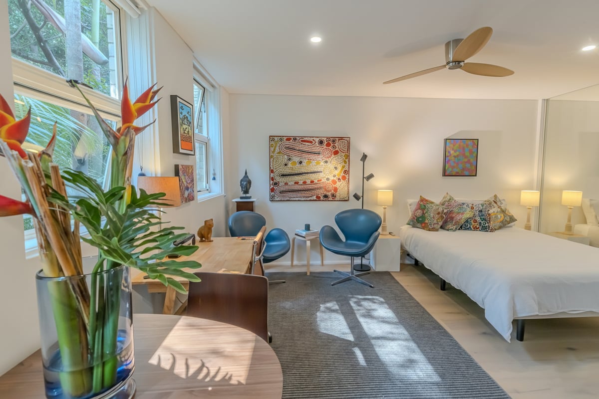 Stunning studio apartment in the renowned Woolloomooloo Wharf built in 1915. Its beautiful views over the water and Potts Point are key, but this studio has everything you need for a city visit or a staycation. Conveniently placed just minutes to Potts Point and within walking distance to all of Sydney's main attractions: Botanic Gardens, Opera House, Harbour Bridge, Art Gallery NSW, Museum of Contemporary Art and the CBD. No parking Early check in or late check out (if available): $50