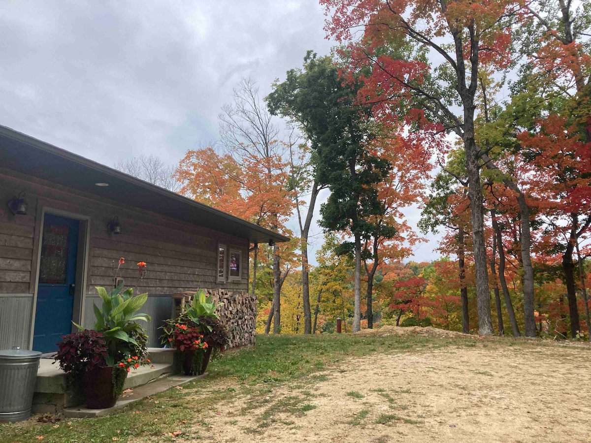Welcome to Driftless Chalet! The wonders of the Driftless Area lie just outside your window. Located on 5 wooded acres just past Spring Green, make this cozy cabin (with fast wifi, heat and A/C!) your HQ as you explore American Players Theater, House on the Rock, Taliesin, state parks, the WI River, wineries and more. Watch for deer and birds while sipping coffee on the porch, roast marshmallows over the campfire, bust out the board games and make lifelong memories!