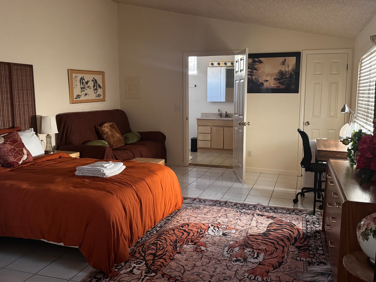 Remodeled Oasis for that perfect Escape to this private guesthouse with an eclectic, colorful design that blends contemporary, rural, European-inspired decor with modern luxuries and spectacular skylights. Peacefully lounge in the lush garden just outside the bedroom. WE ACCEPT UP TO 2 DOGS WITH AN ADDITIONAL $150 PET CLEANING FEE. NO CATS. PLEASE TAKE NOTICE THAT THERE ARE 3 EXTERIOR SURVEILLANCE VIDEO CAMERAS IN PARKING AREA AND DRIVEWAY, FOR GUEST SAFETY.