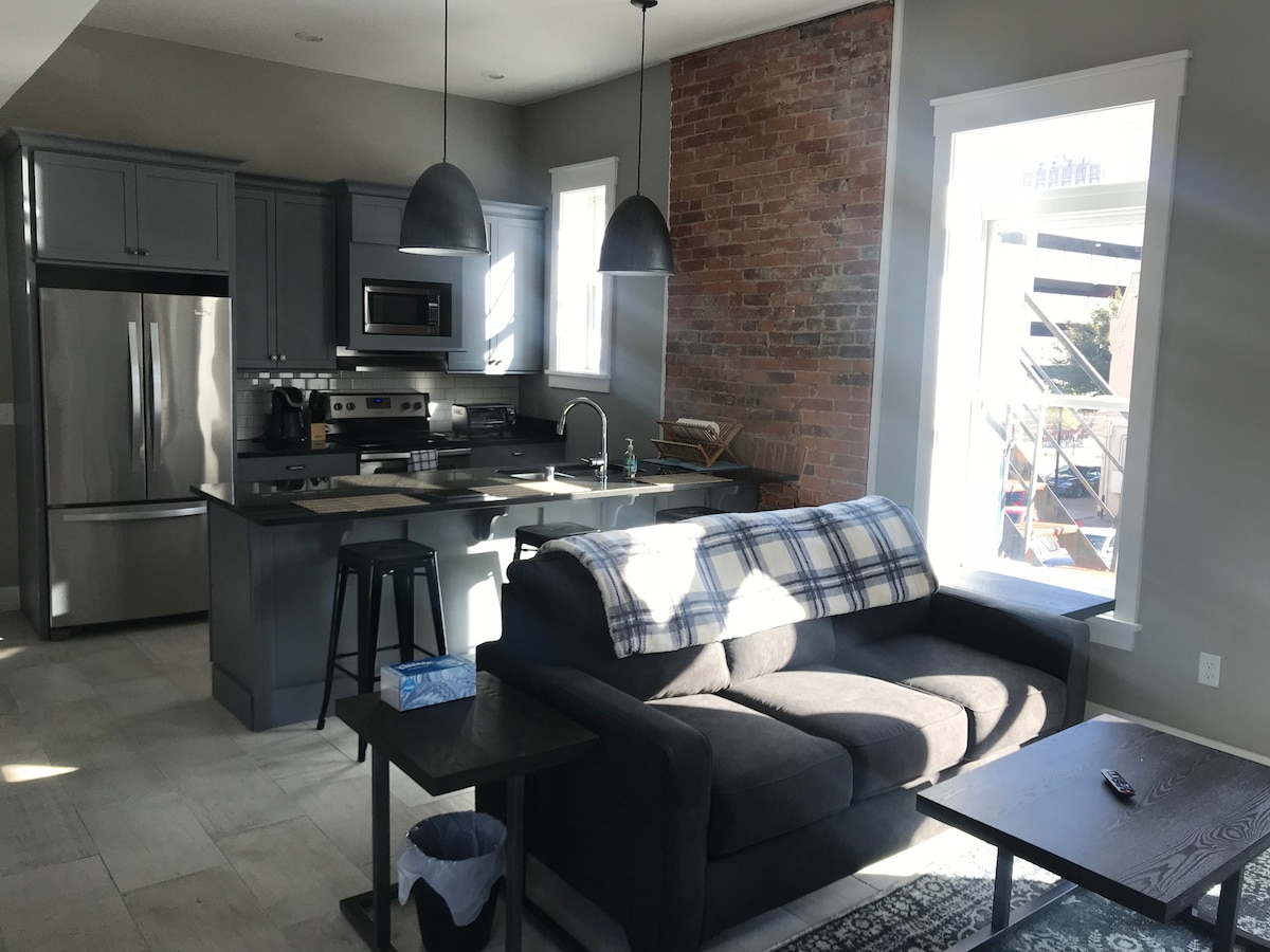 Fresh, modern and sleek 950 SqFt loft style unit. Constructed inside the historic glassworks building, this condo is one of the most unique in the city. You will be amazed by the style, but also the amenities nearby. With a 2 minute walk to Museum row, and a 7 minute walk whiskey row, the convention center, the YUM! center and the center for the arts - everything is nearby. With Wifi, Netflix, and Hulu provided you have everything you need. The perfect spot for relaxing or going out on the town