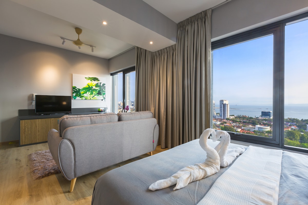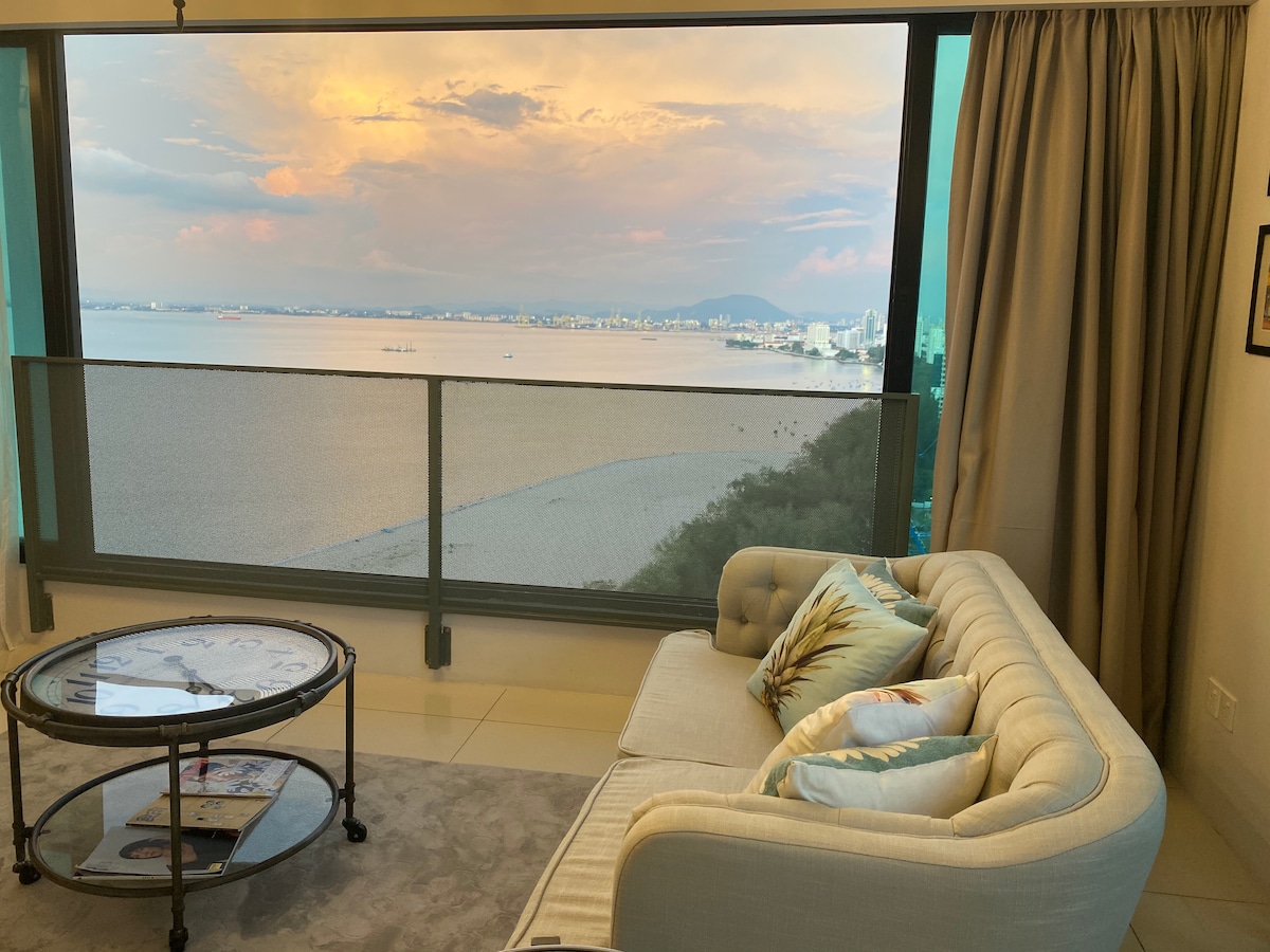 Coastal Serenity with Ocean View Welcome to your tranquil seaside escape at Seafront & Seaview_NordicHouse by Hanoverien Suites — a beautifully styled, light-filled space designed for comfort, relaxation, and unforgettable coastal moments. -Turn left to : Georgetown Tourist Attractions, Gurney & Pulau Tikus -Turn right to : Tanjung Bungah, International Schools and Batu Ferringhi beach. -Immediate adjacent to : International Schools at Straits Quay 槟城国际学校 국제학교 国際学校 こくさいがっこう