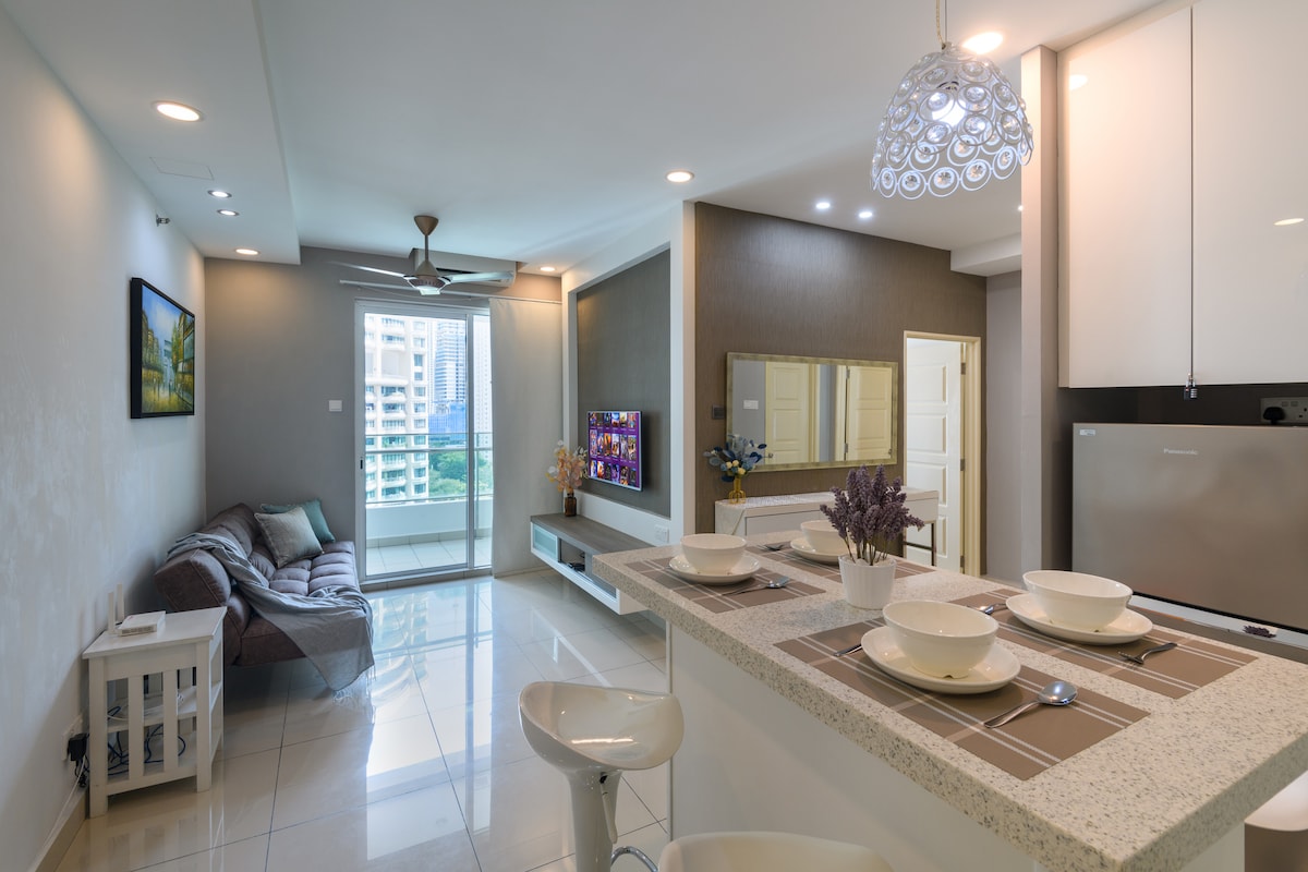 我们家是一间位于完美地段的海景套房。 让你可以离开烦嚣,与大自然海景共处的舒适休息环境。 温暖舒适,精致的室内设计,配上无限高速Wifi 和提供安全饮用的过滤水机。再加上9楼露天海景泳池,难怪很多客人都告诉我们,他们好想就赖在家里不出门啦 ^_^ 其实我们家里离市中心(乔治市世遗古迹区)才5公里而已,乘车15分钟就可以去找壁画拍照打卡啦! 走吧,动身,出门找美食咯~ 步行 : - 日式 /韩式餐馆/ 7-11 (24小时)便利店,都位于底楼(Ground Floor) - 巴士车站 > 1分钟 - 阳光超市 > 5分钟 - 肯德基快餐店 / Watsons药房 > 5分钟 - 星期五夜市 > 5分钟 乘车 : - 美食中心 > 10分钟 - 麦当劳 (24小时) > 10分钟 - 星巴克 > 10分钟 - 乔治市UNESCO世遗区(街头壁画) > 15分钟 - Sungai Nibong长途巴士站 > 15分钟 - 槟威大桥 > 15分钟 - 槟城国际机场 > 25分钟 - 升旗山 / 极乐寺 > 25分钟 - Batu Feringgi 海滩 > 30 mins