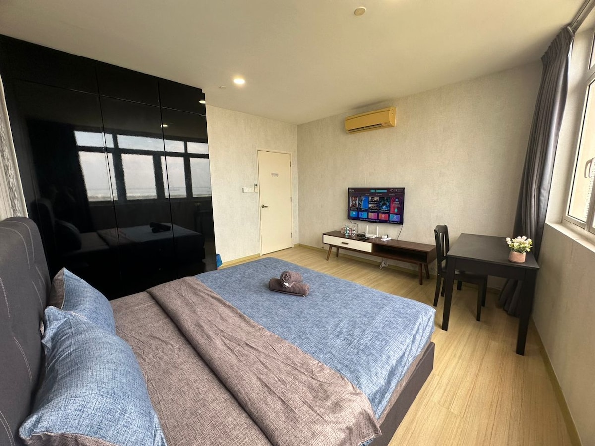Jazz Suites Penang Relax in this peaceful high-floor seaview unit at Jazz Suites Penang, Tanjung Tokong. Enjoy unobstructed sea views and beautiful sunsets in a cozy, clean, and comfortable space. The unit comes with self check-in, free parking, and access to pool & gym. Conveniently located near Gurney Drive, Straits Quay, Island Plaza, cafes, and local food spots — perfect for staycations or short getaways. Come experience a peaceful, cozy, and memorable stay by the sea in Penang.
